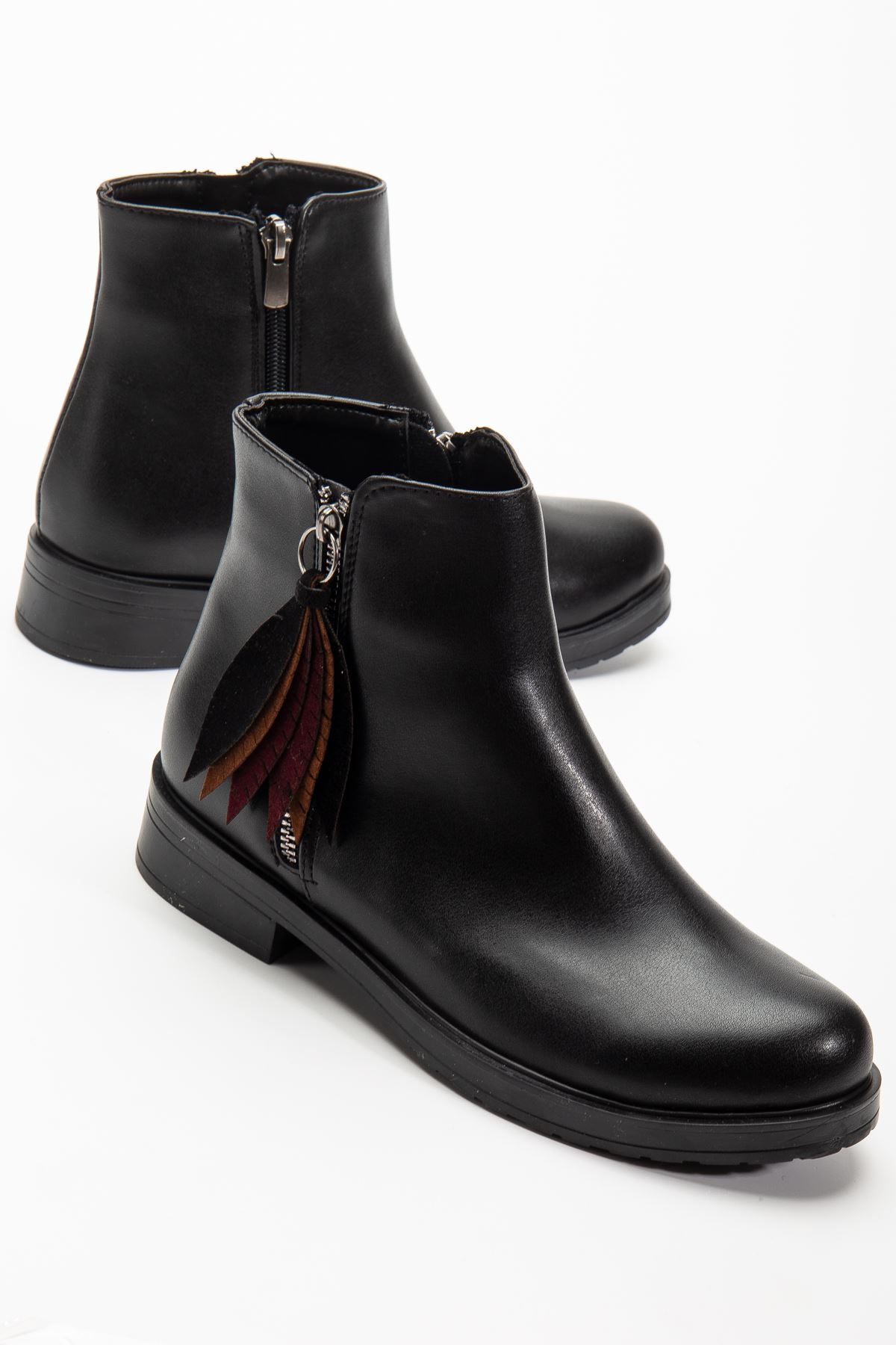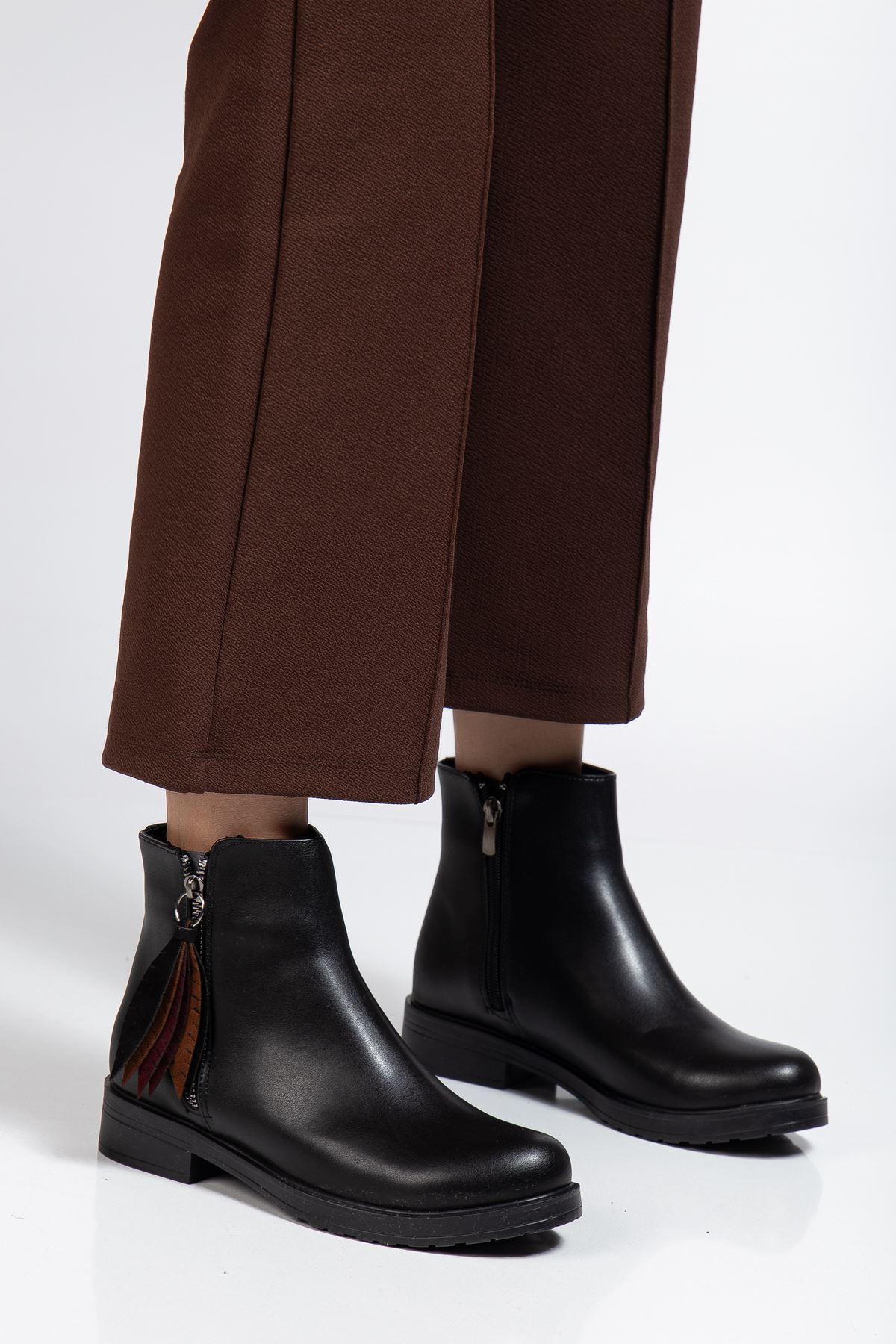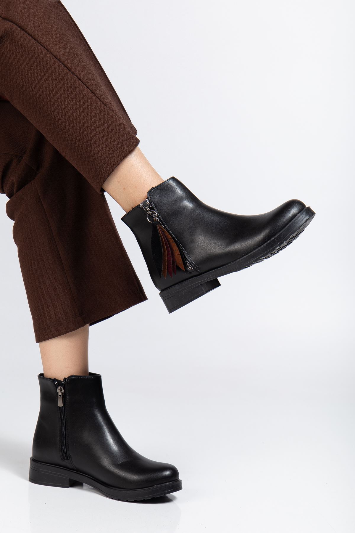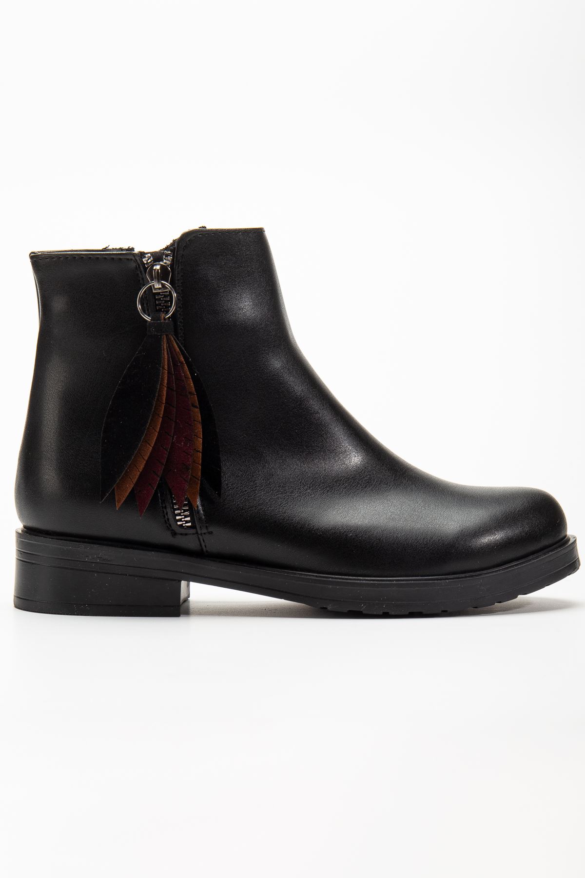 165-205 Siyah Cilt Yaprak Desenli Fermuarlı Günlük Kadın Bot