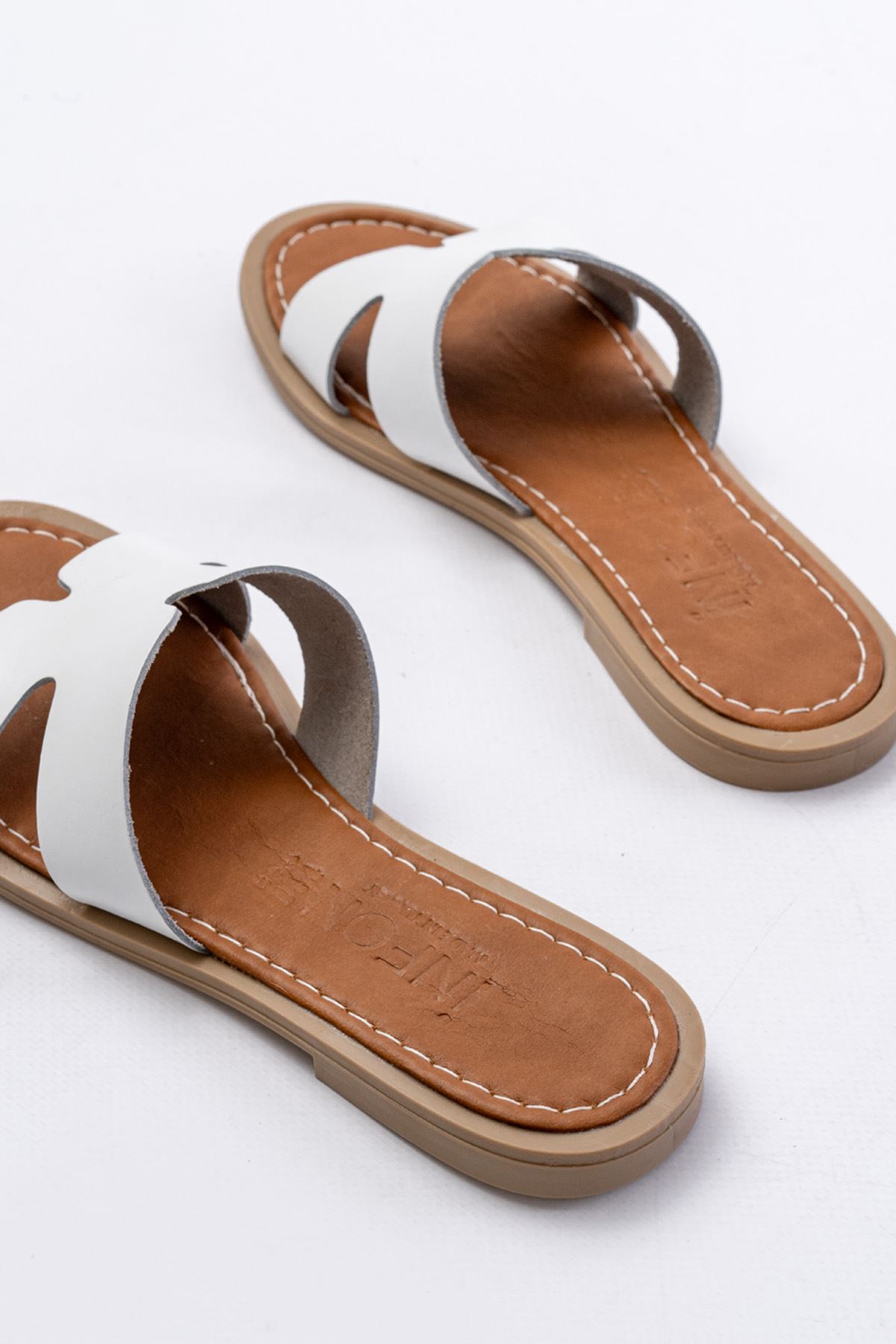 169-6100 Beyaz Ortopedik Hakiki Deri Kadın Terlik