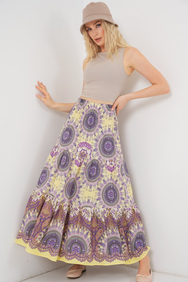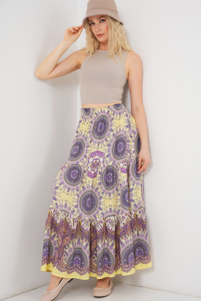 1898 Desenli Uzun Etek – Sarı