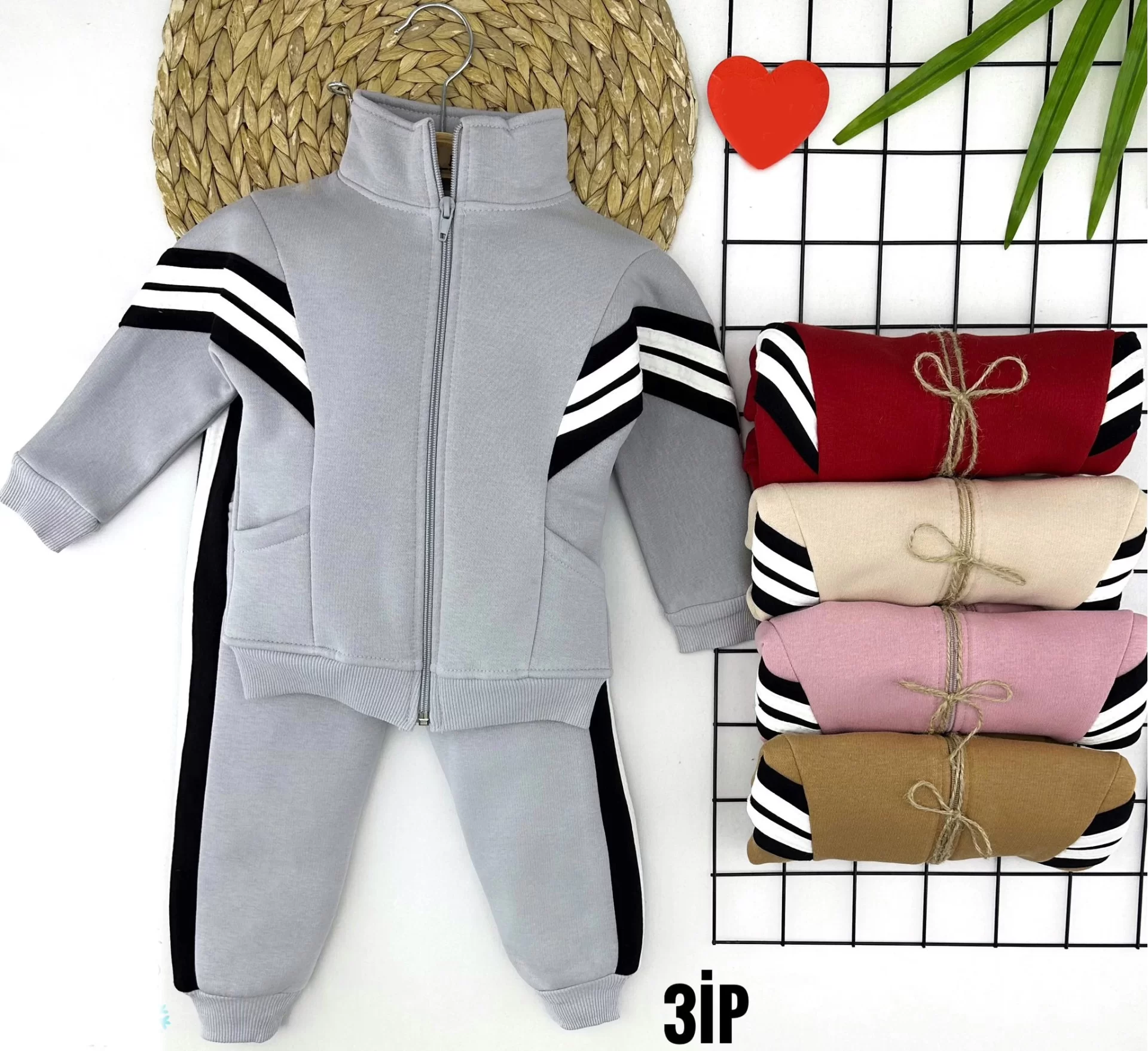 2-3-4-5 Yaş Fermuar Kapamalı Çift Cepli Şeritli Uzun Kollu 2li Kız Erkek Çocuk Takımı Hardal