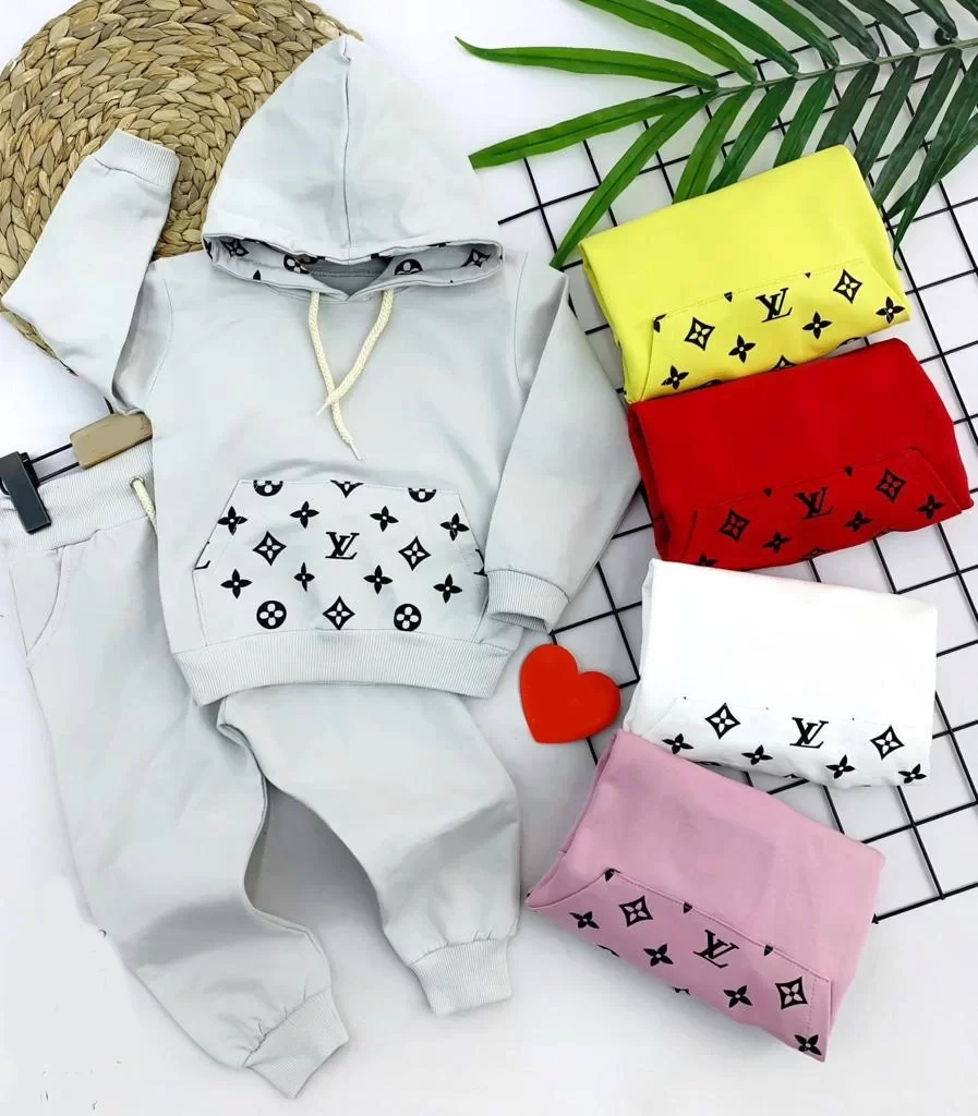 2-3-4-5 Yaş Kapşonlu Cep Detaylı Uzun Kollu 2li Kız Erkek Çocuk Takımı Sarı adet