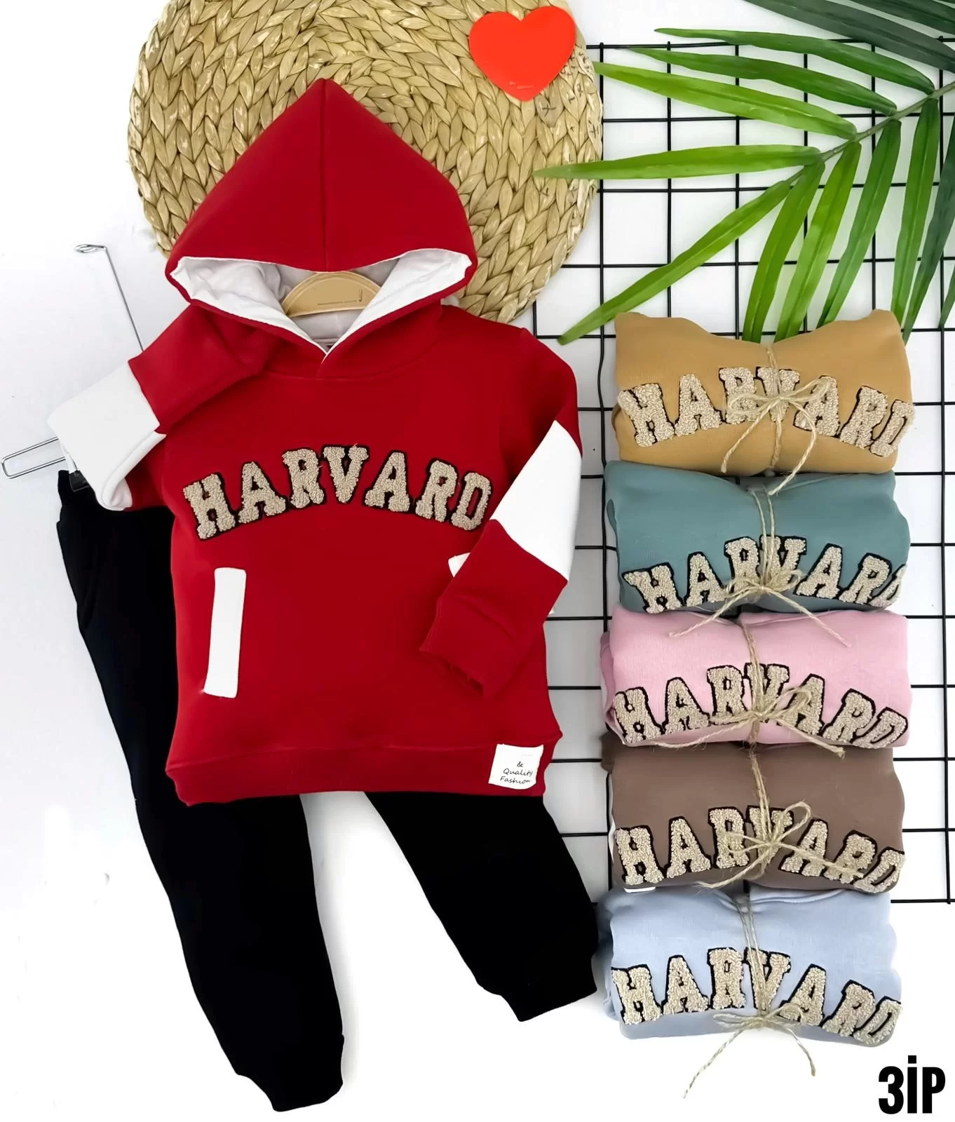 2-3-4-5 Yaş Kapşonlu Harvard Nakışlı Uzun Kollu 2li Kız Erkek Çocuk Takımı Kahverengi