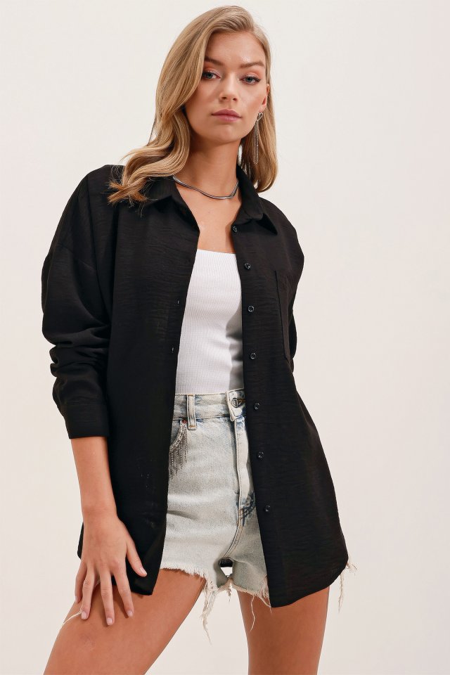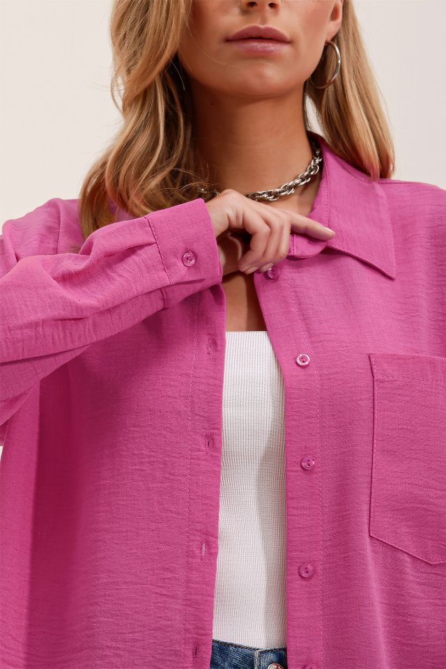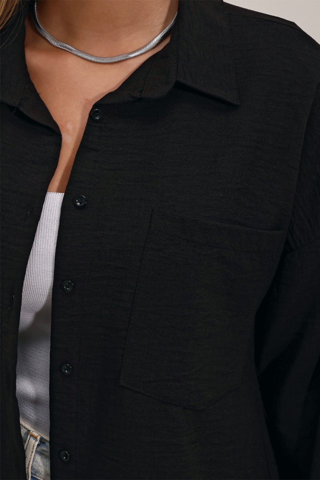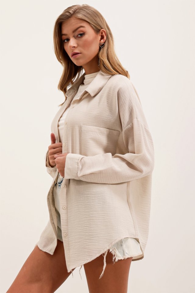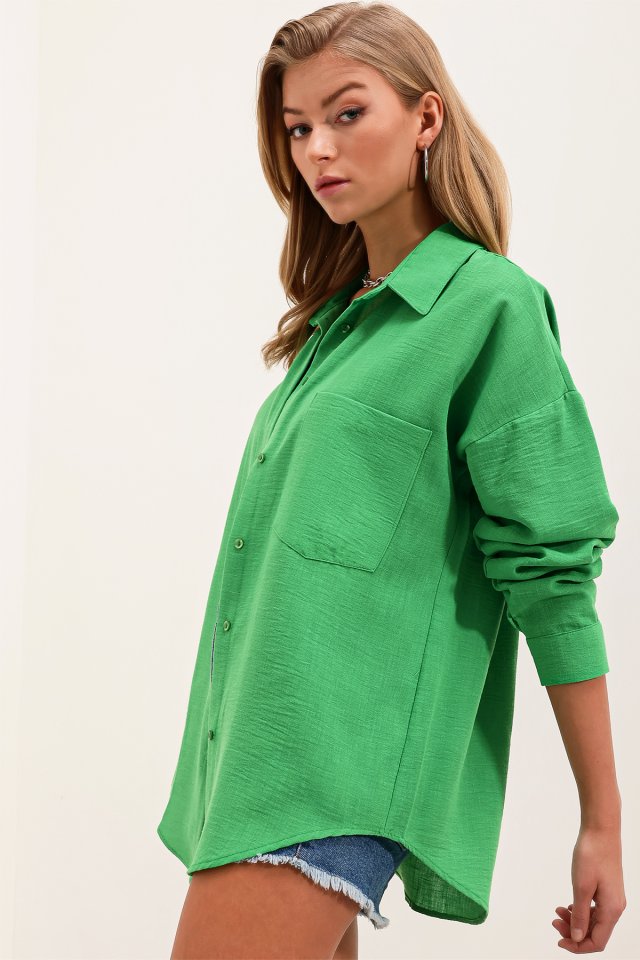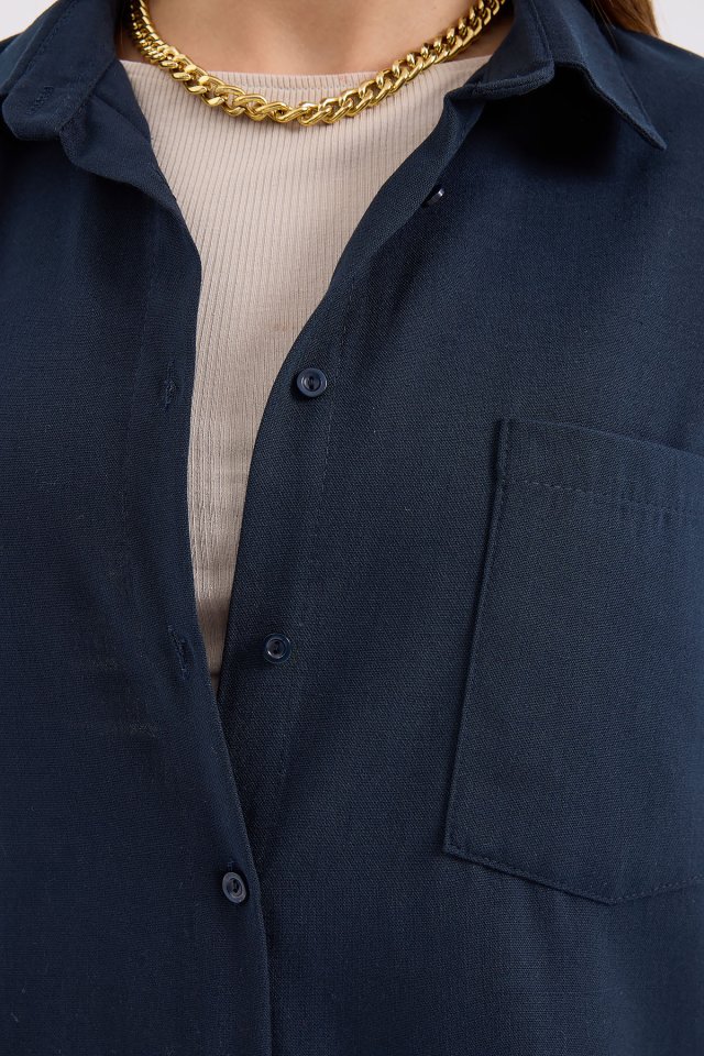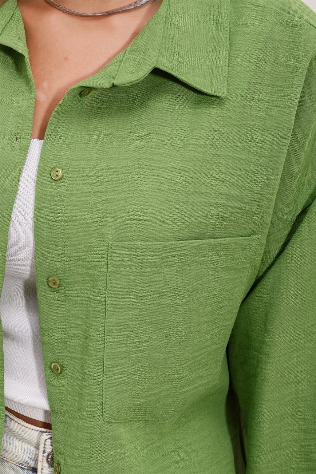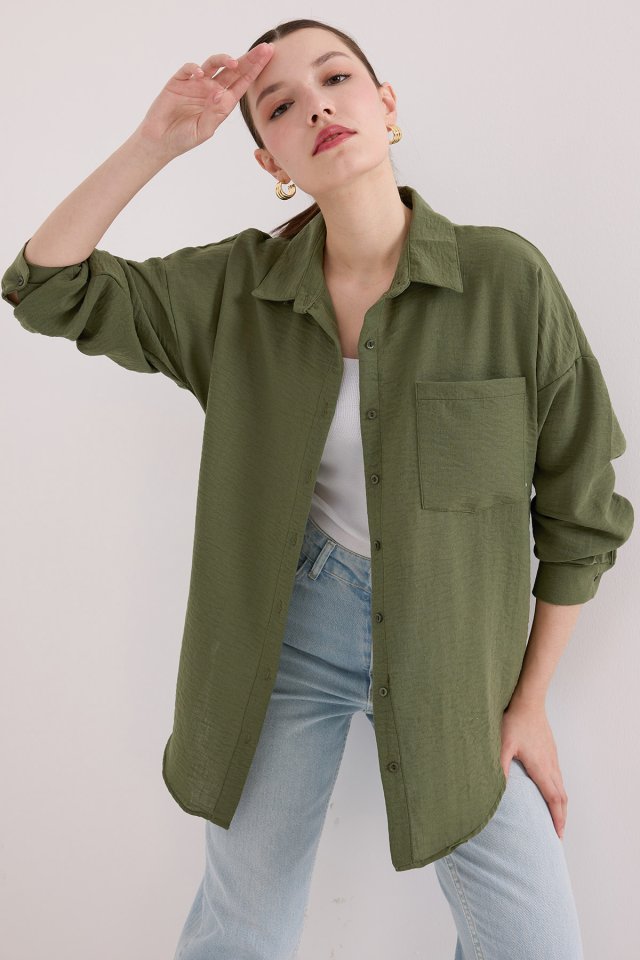 20153 Tek Cepli Oversize Keten Gömlek – Haki