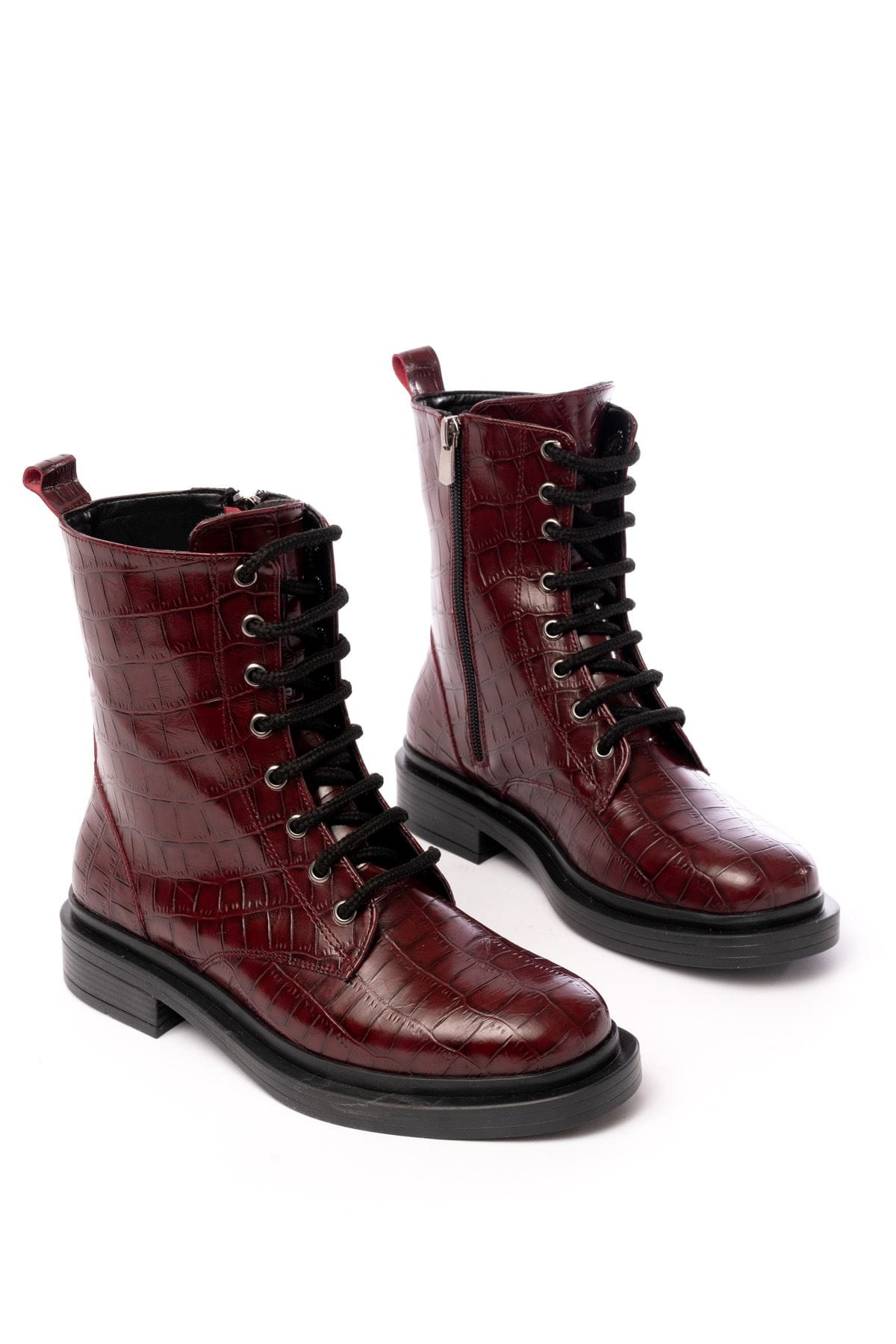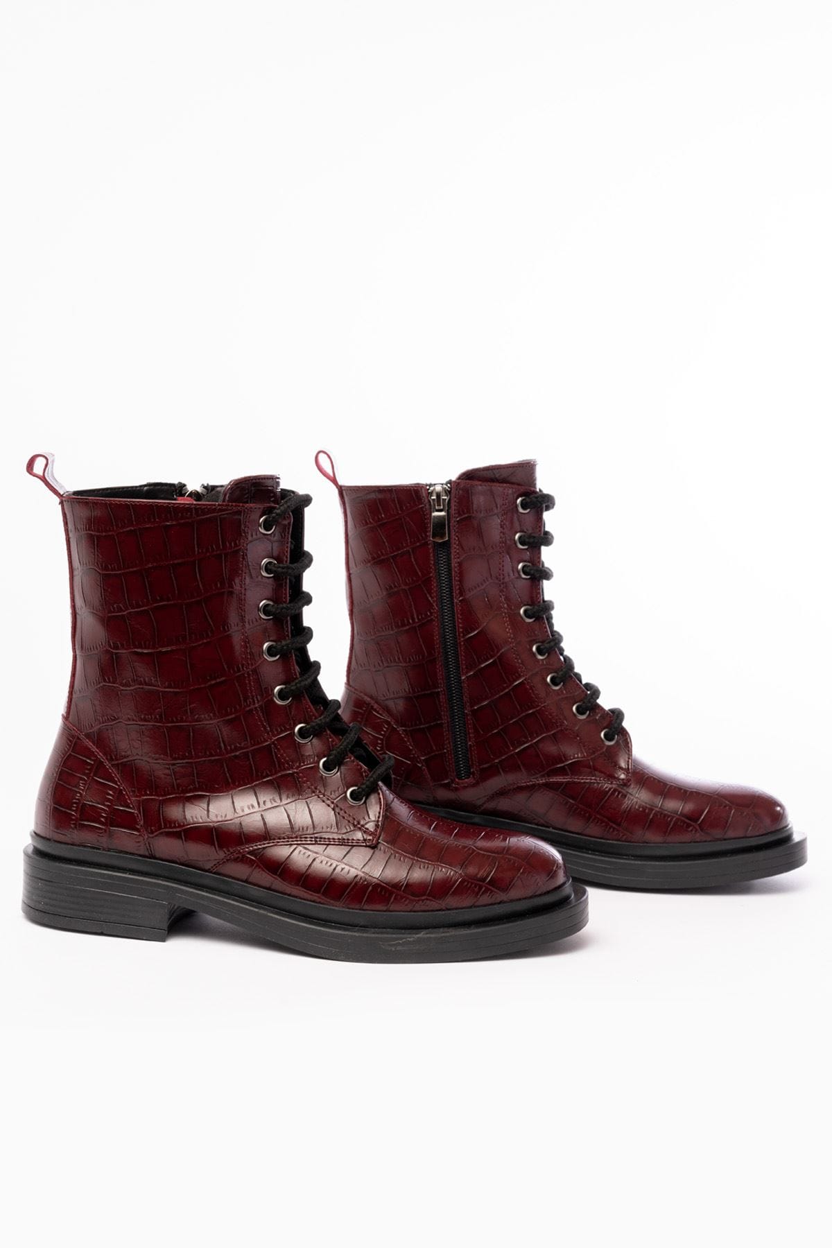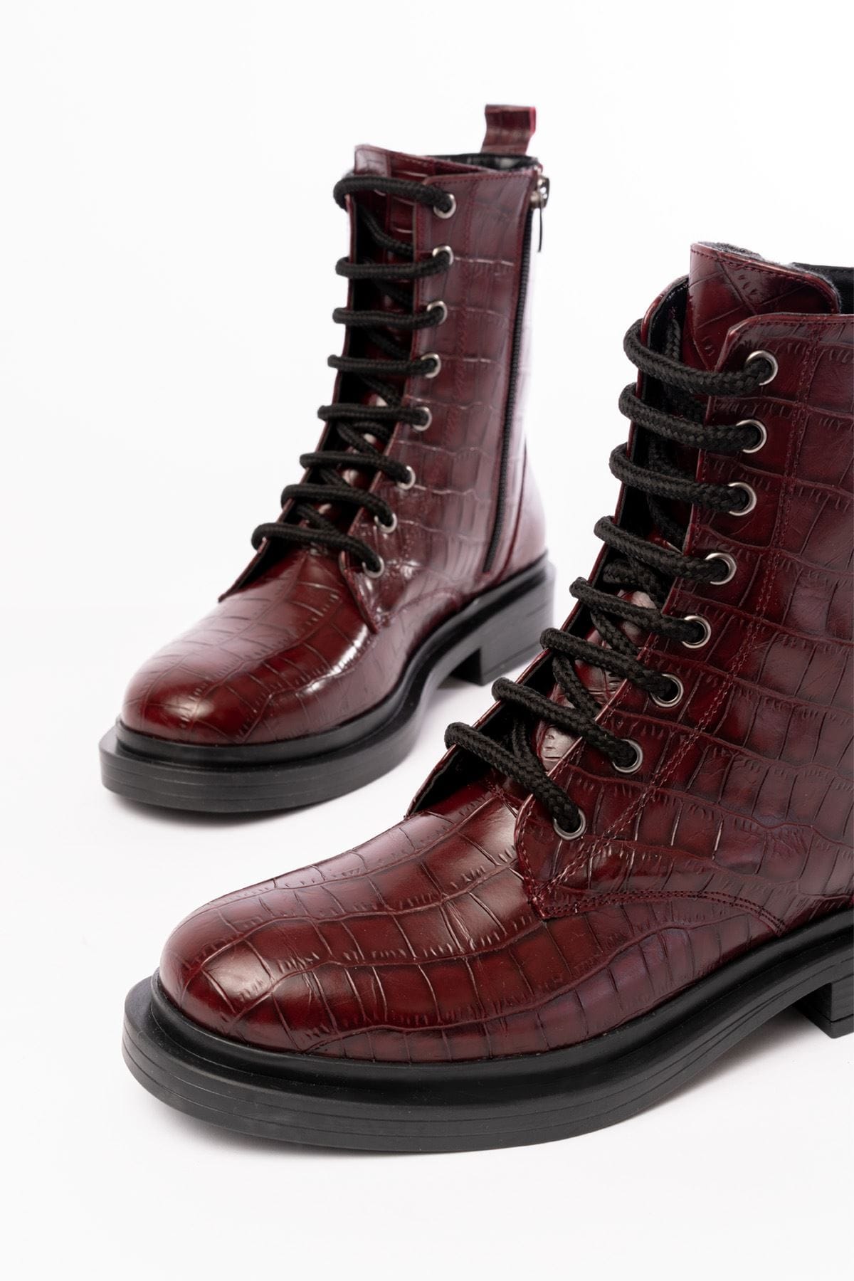 2024-2289 Bordo Kroko Bağcıklı Fermuarlı Günlük Kadın Bot