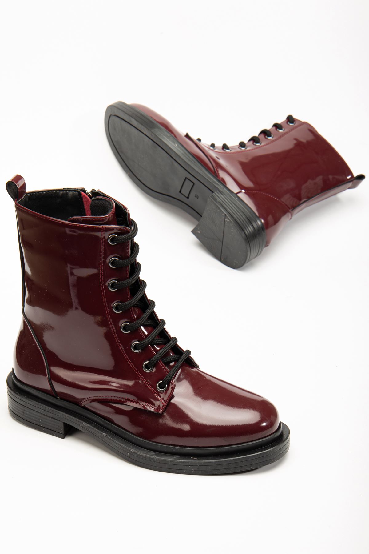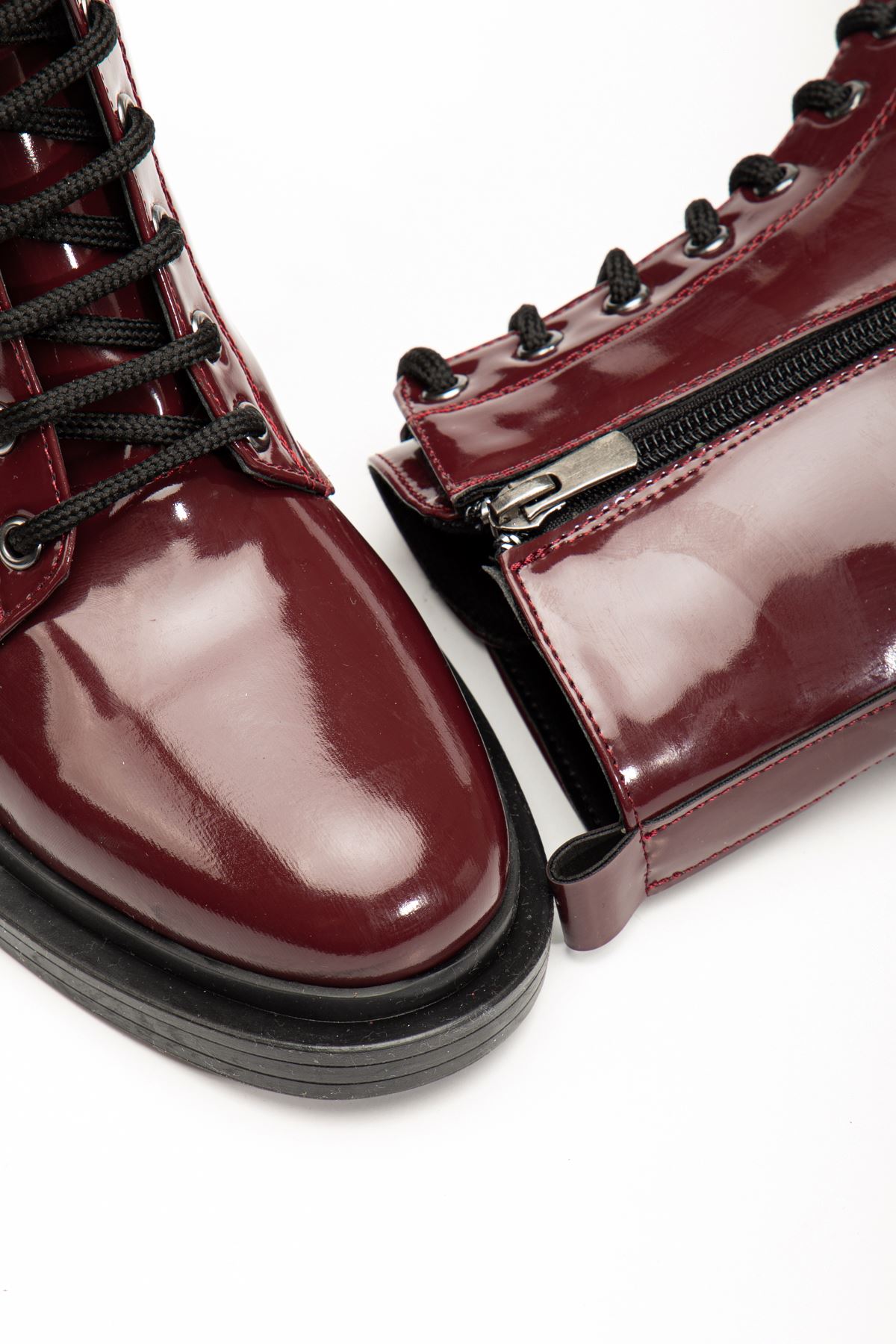 2024-2289 Bordo Rugan Bağcıklı Fermuarlı Günlük Kadın Bot