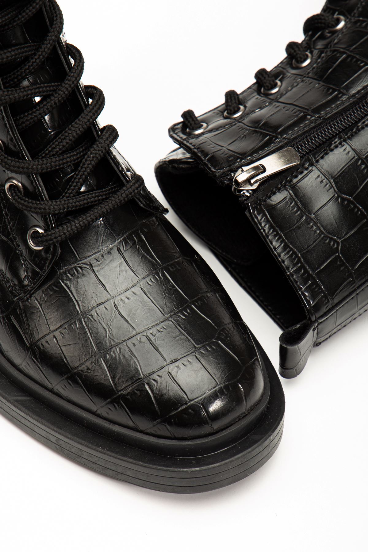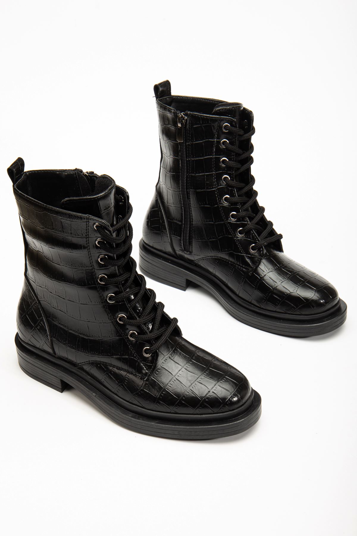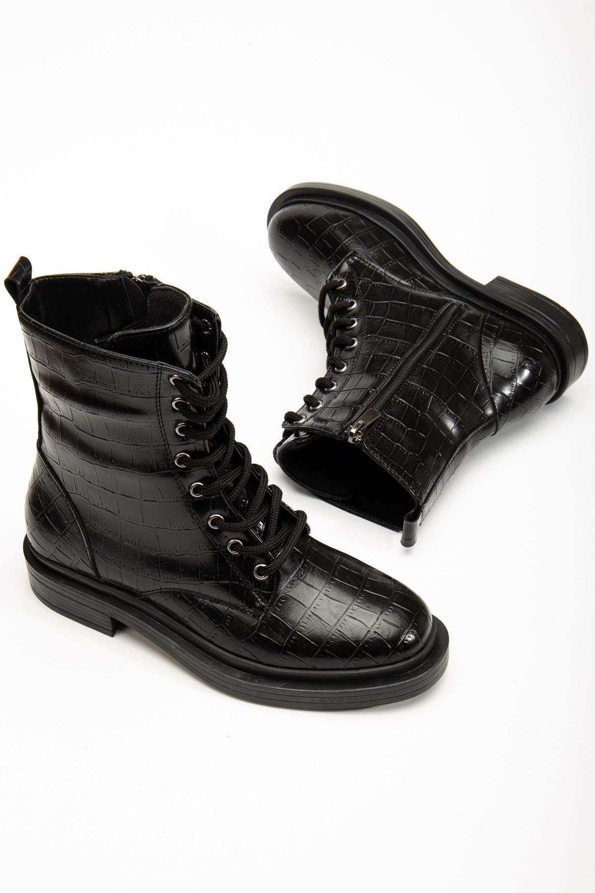 2024-2289 Siyah Kroko Bağcıklı Fermuarlı Günlük Kadın Bot