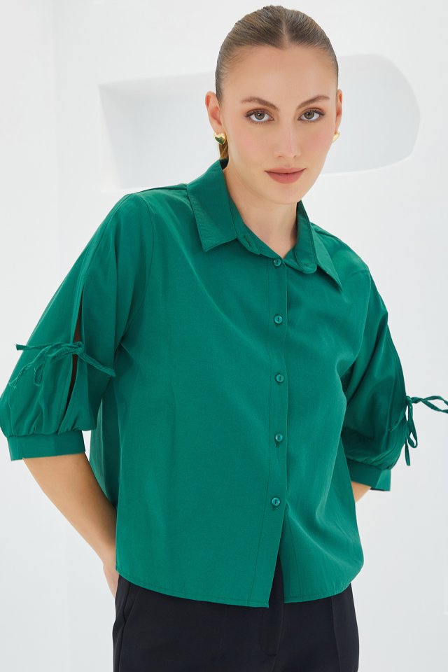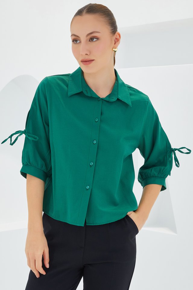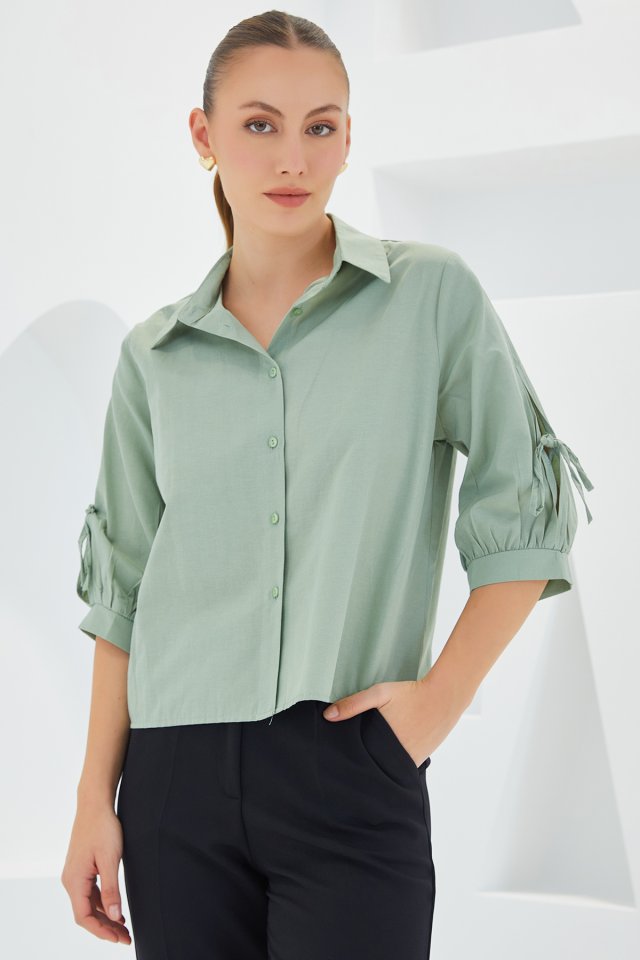 20246 Kol Detaylı Crop Gömlek – İndigo