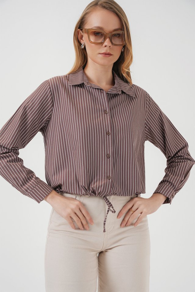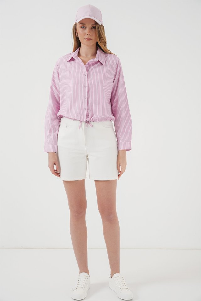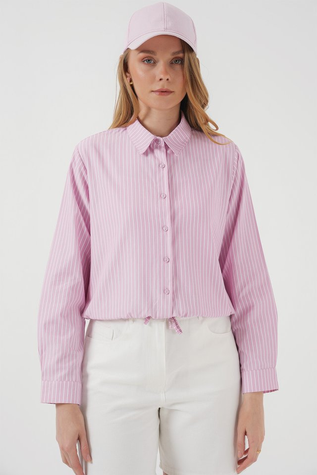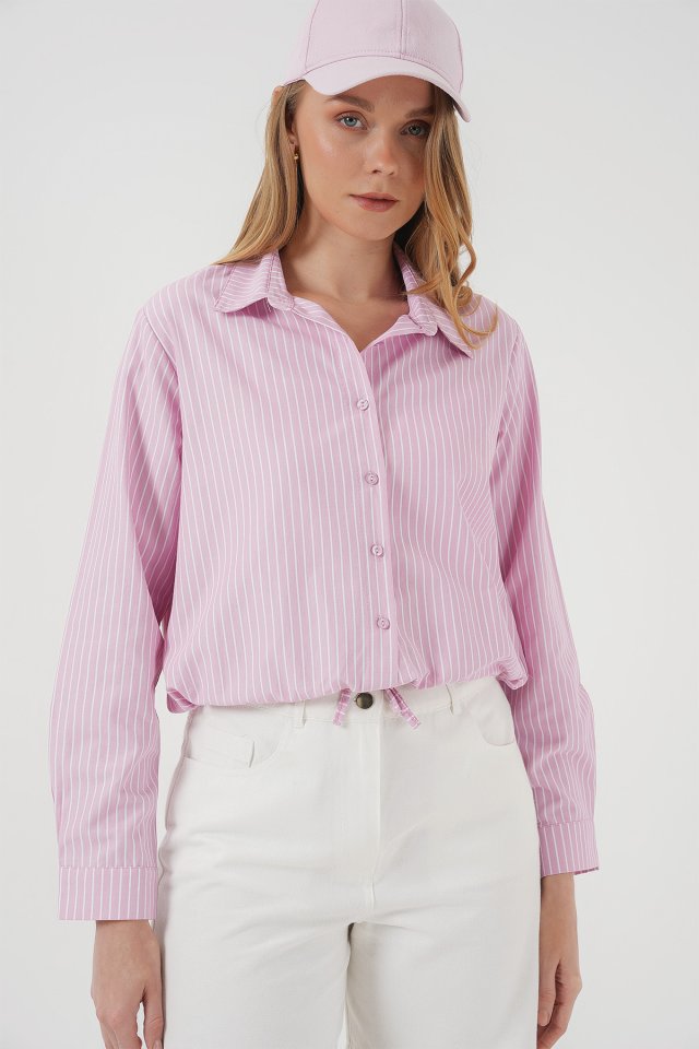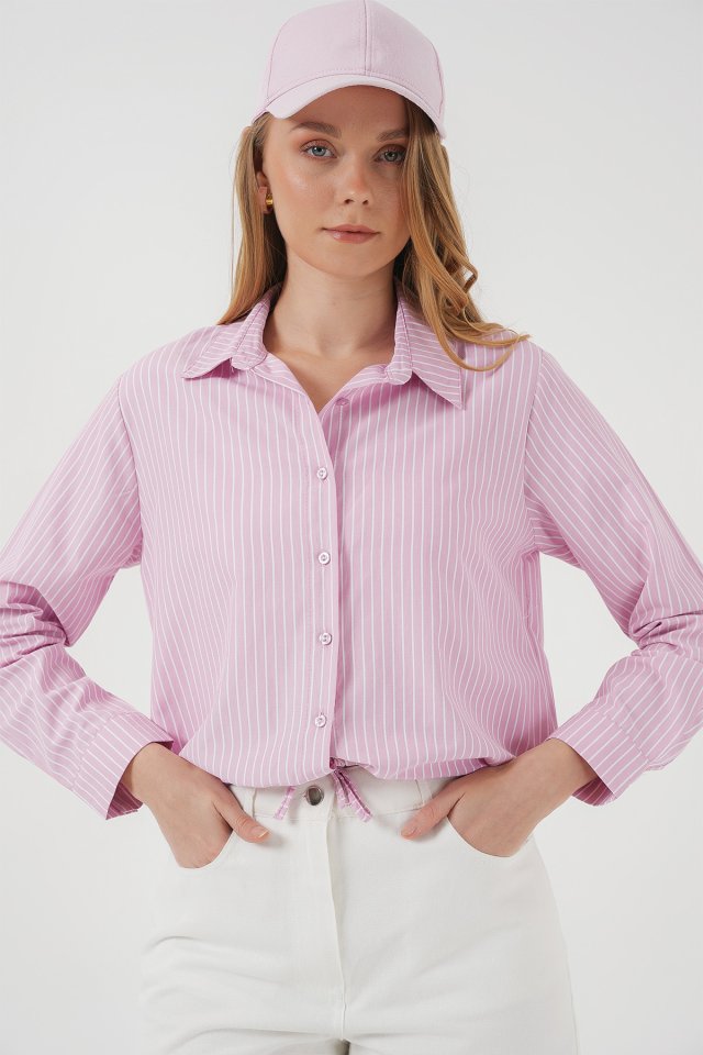 20276 Uzun Kol Çizgili Gömlek – Pembe