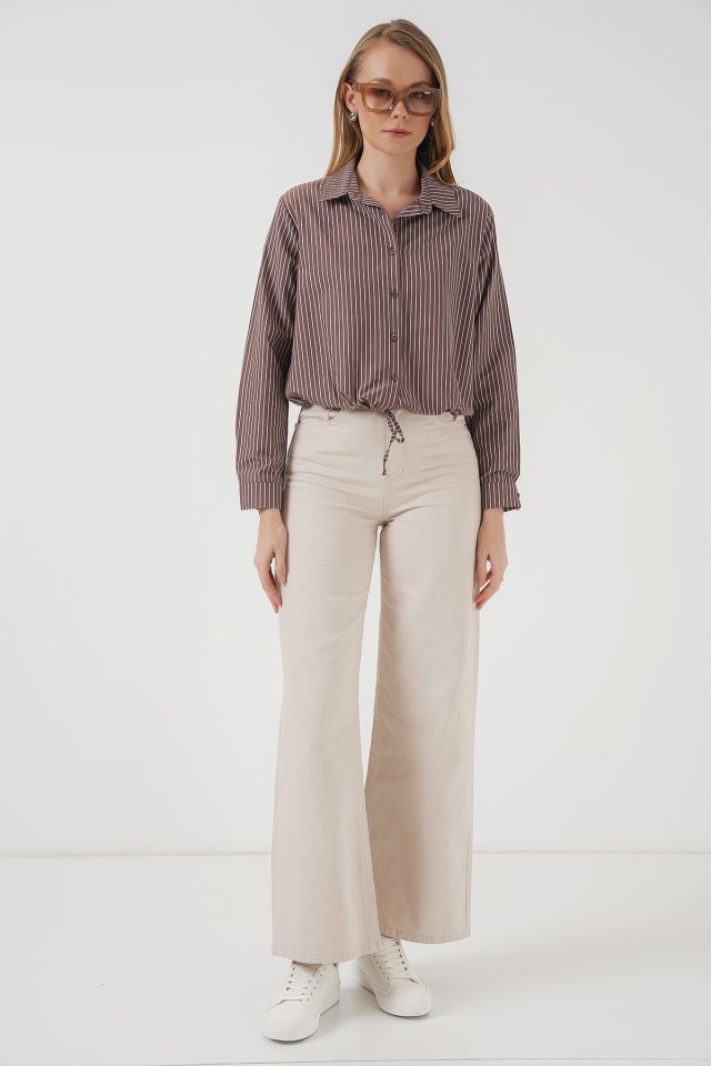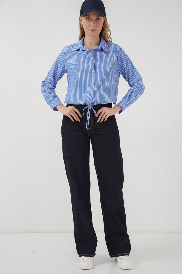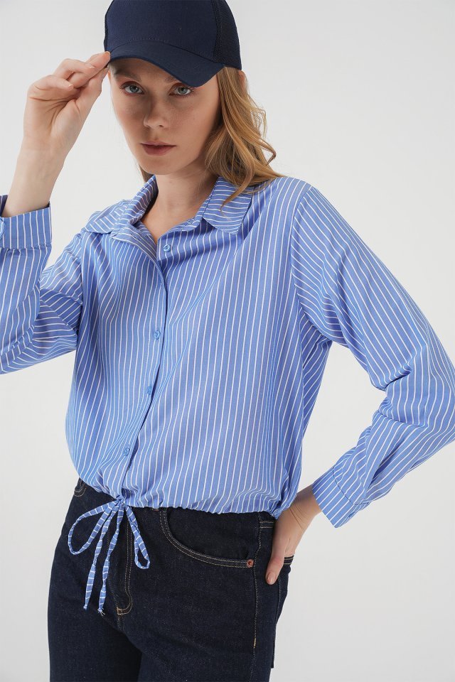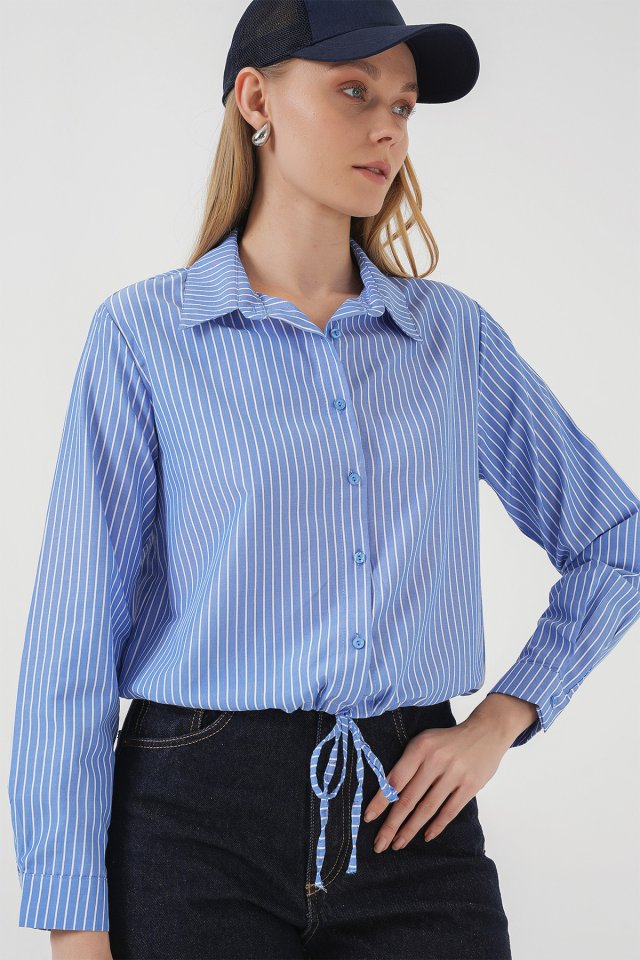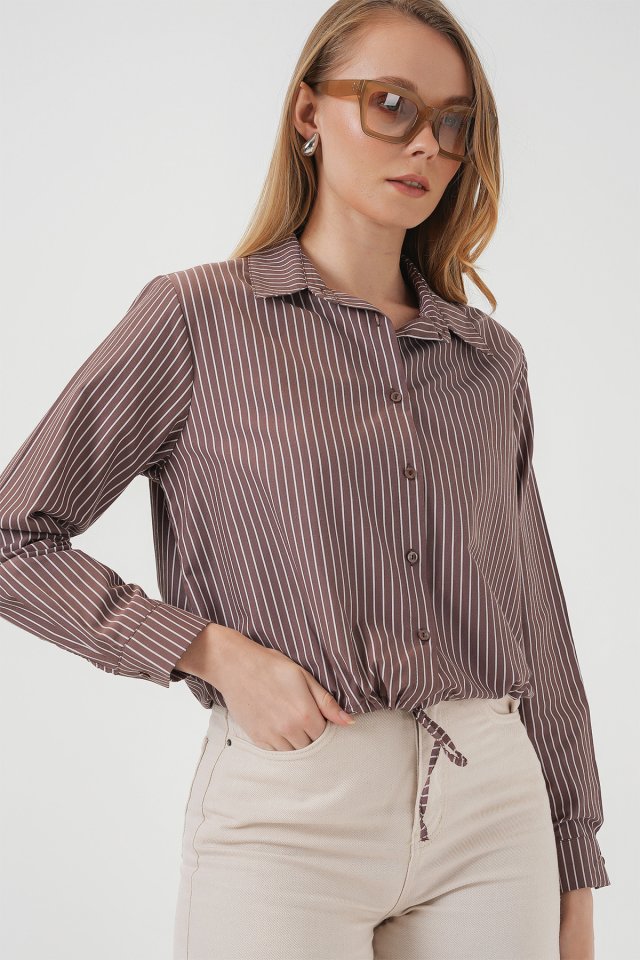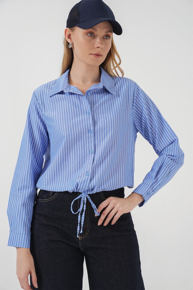 20276 Uzun Kol Çizgili Gömlek – Pembe