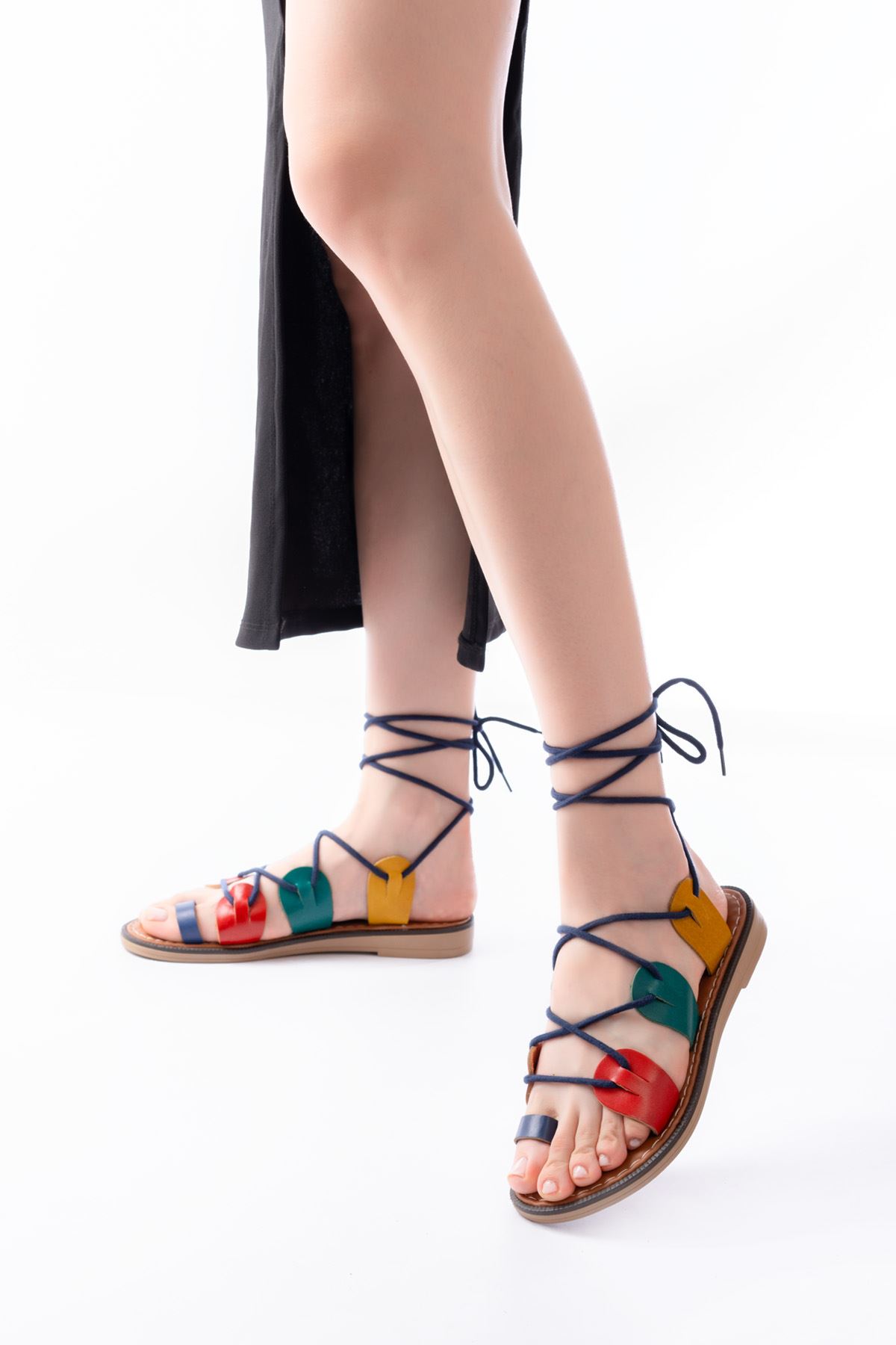 205-01 Multi Bilekten Bağlamalı Ortopedik Hakiki Deri Kadın Sandalet