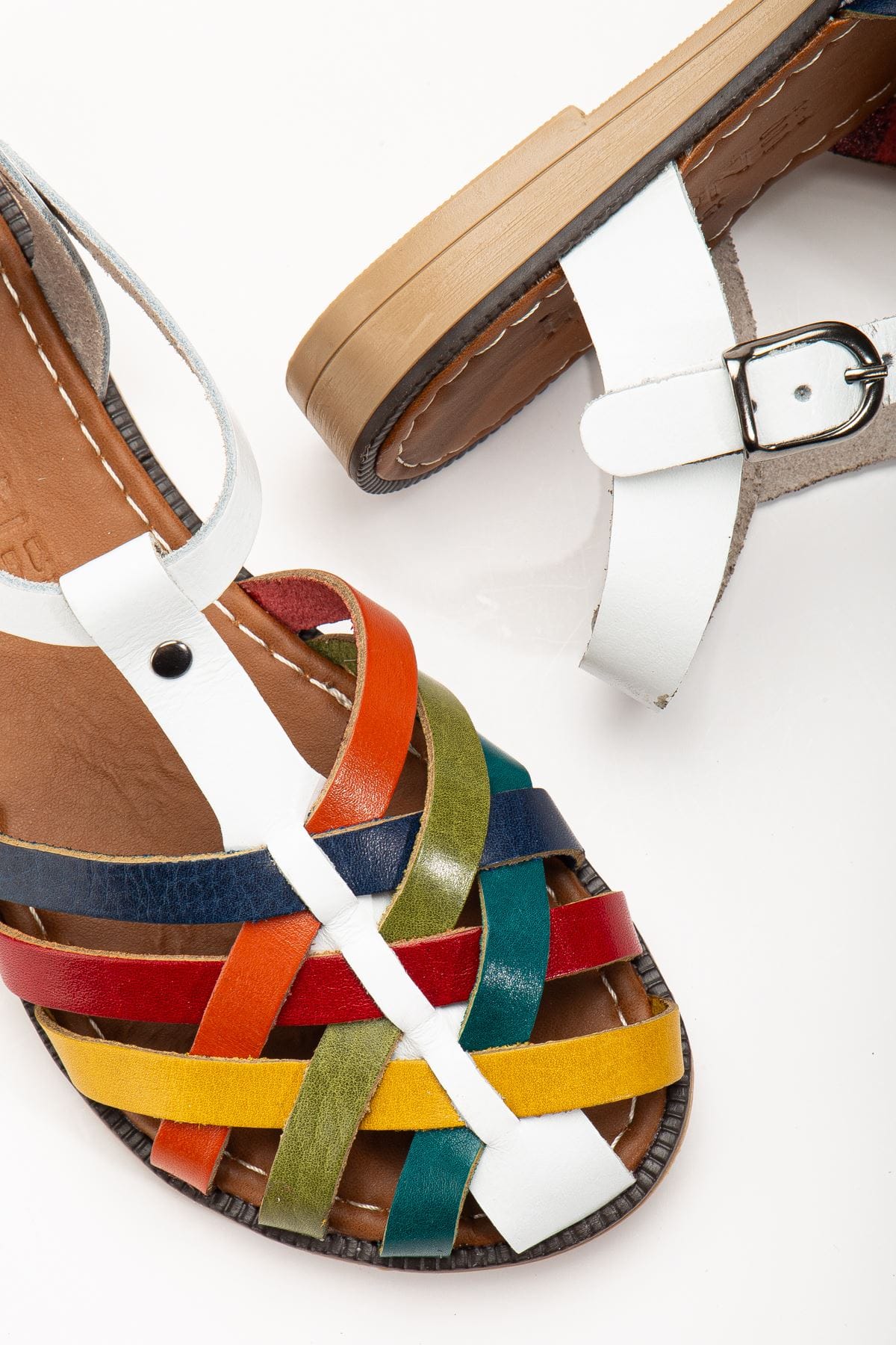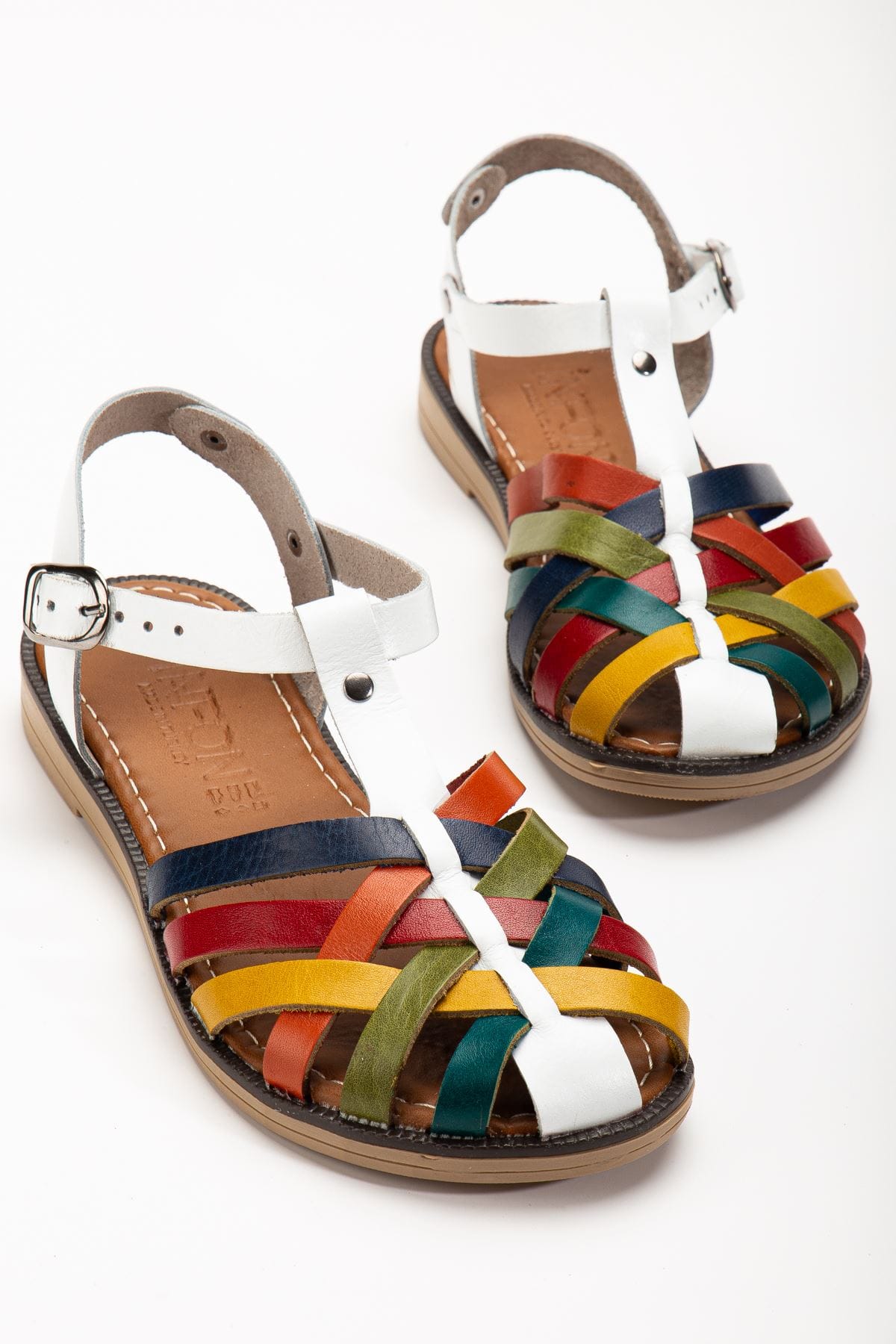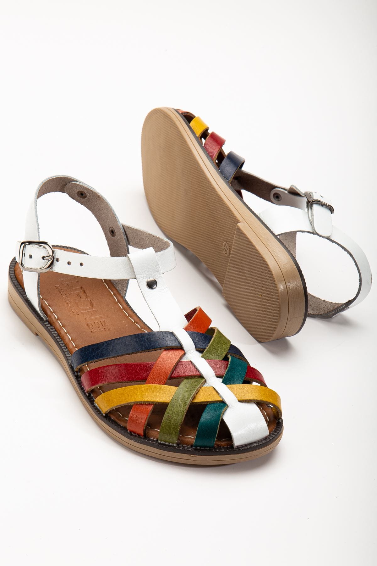 205-02 Beyaz Multi Ortopedik Hakiki Deri Kadın Sandalet