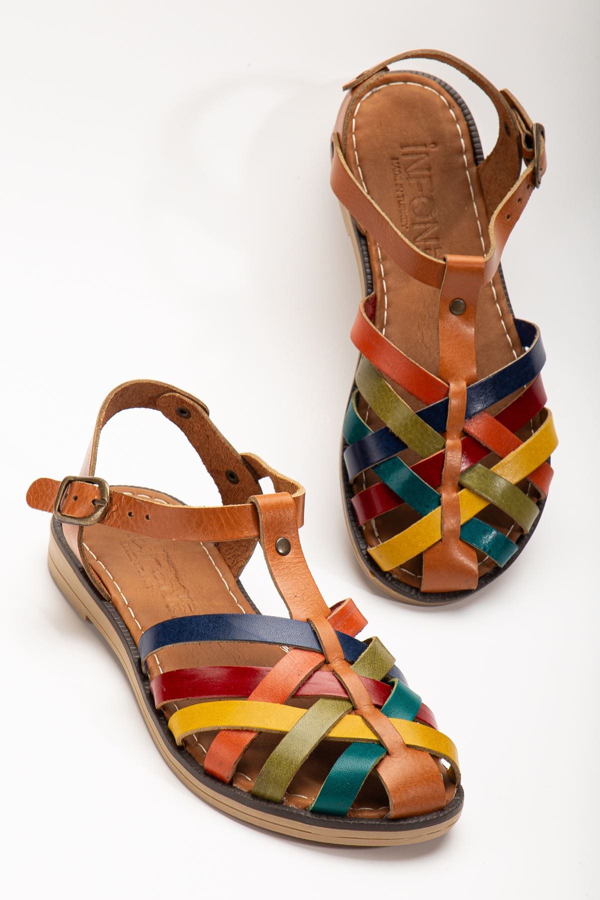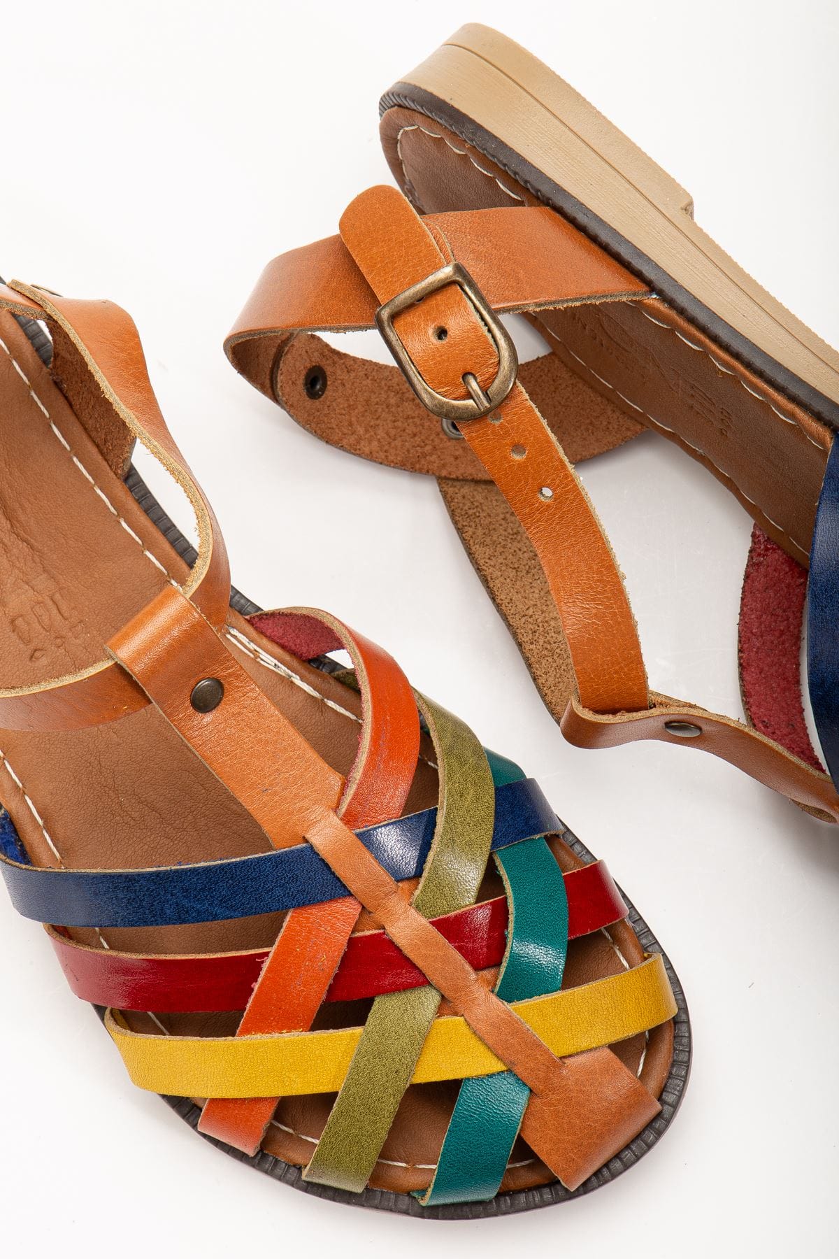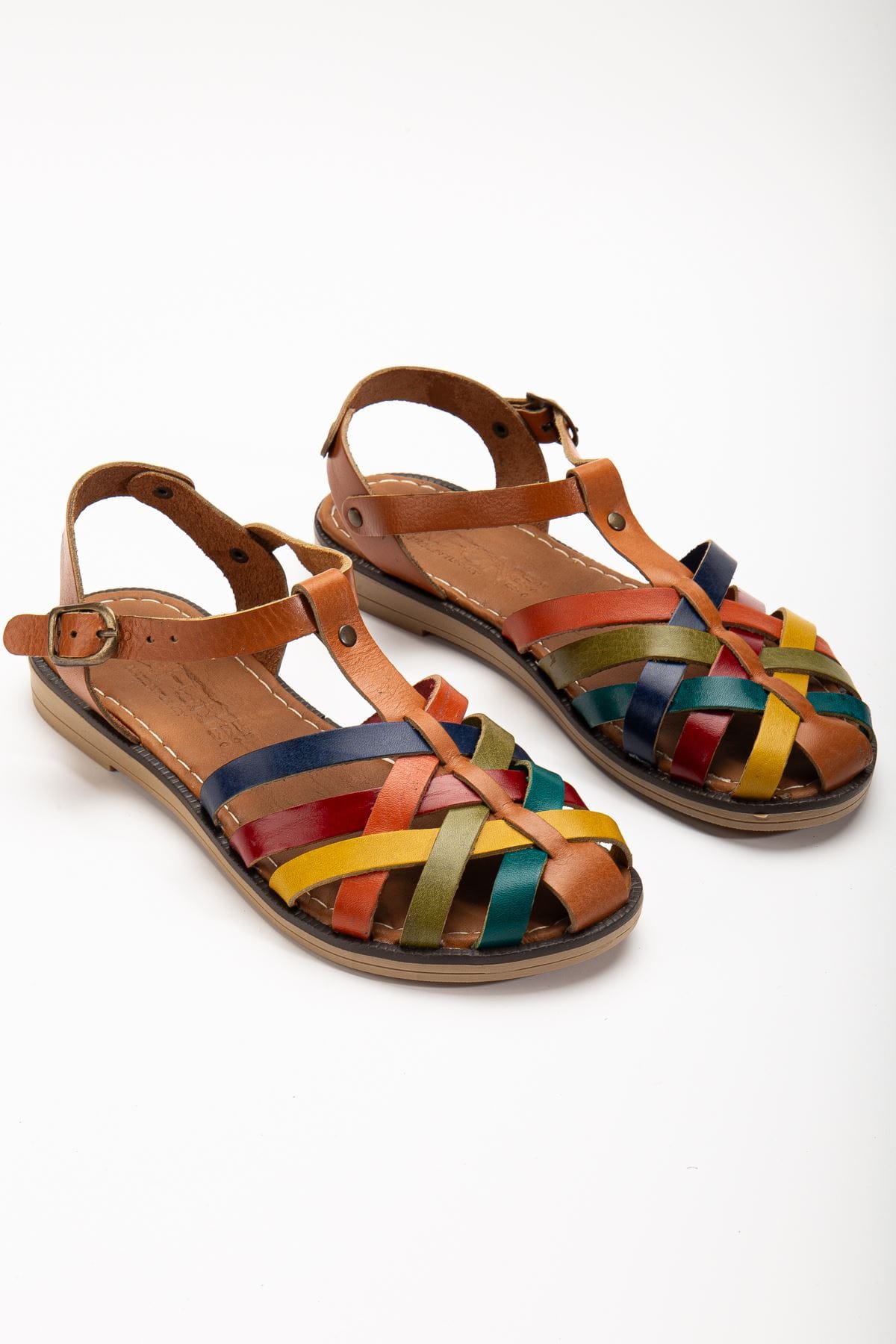 205-02 Taba Multi Ortopedik Hakiki Deri Kadın Sandalet