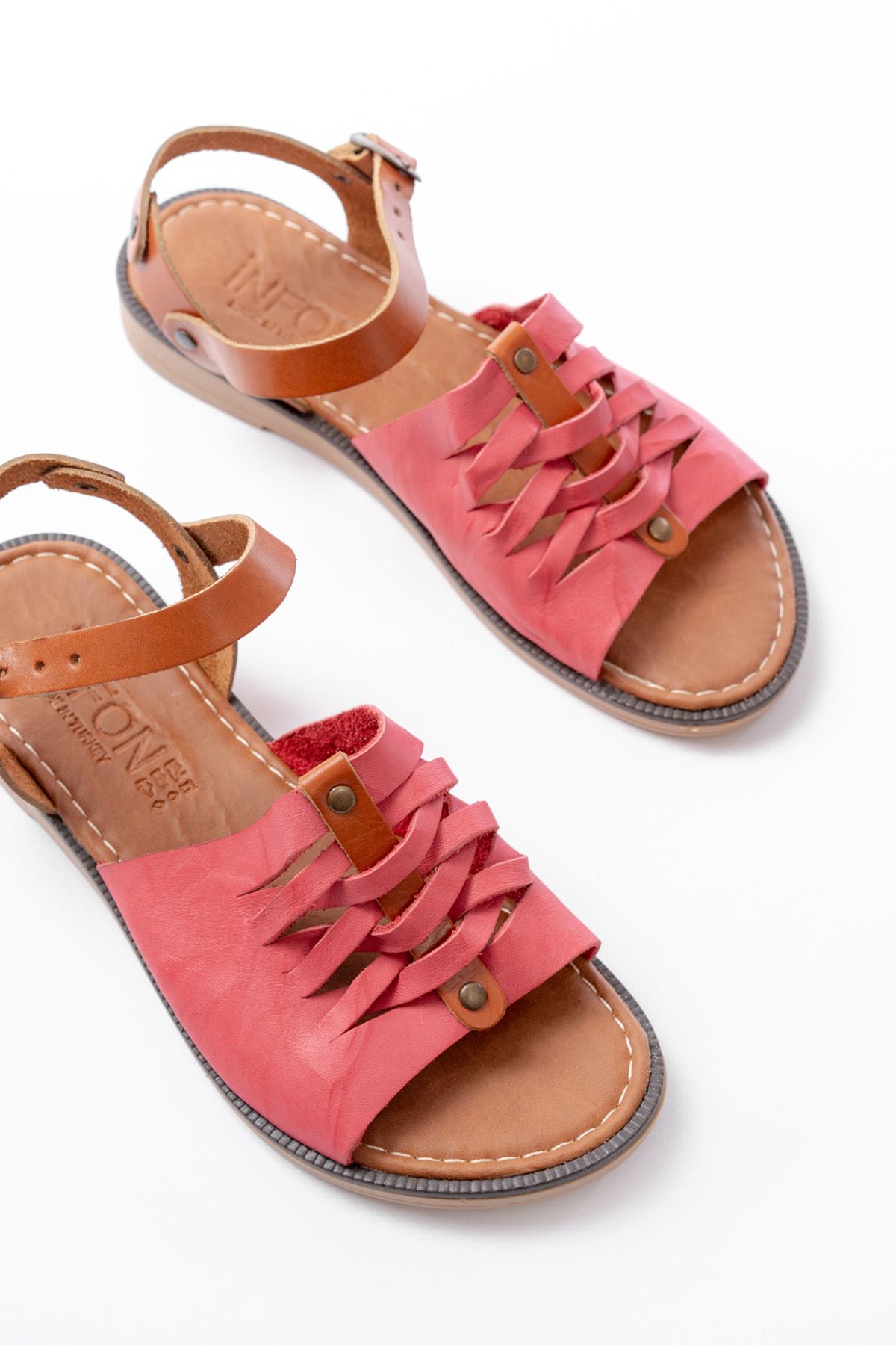 205-029 Fuşya Ortopedik Hakiki Deri Kadın Sandalet