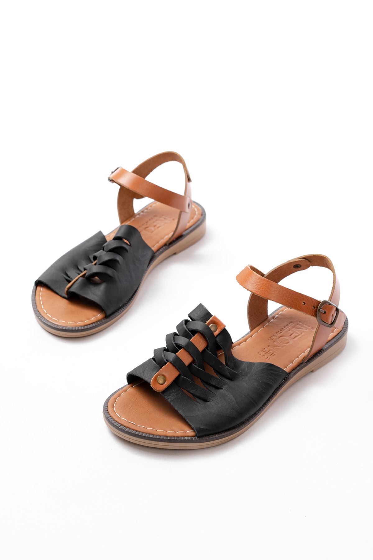 205-029 Siyah Ortopedik Hakiki Deri Kadın Sandalet
