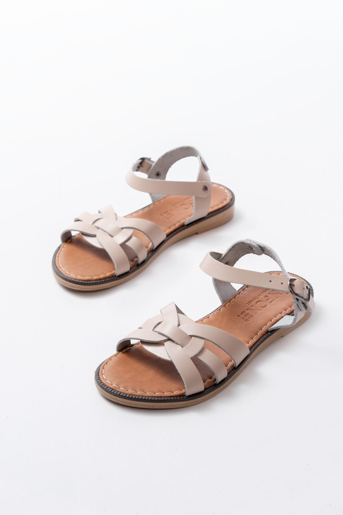 205-030 Bej Hakiki Deri Ortopedik Taban Kadın Sandalet