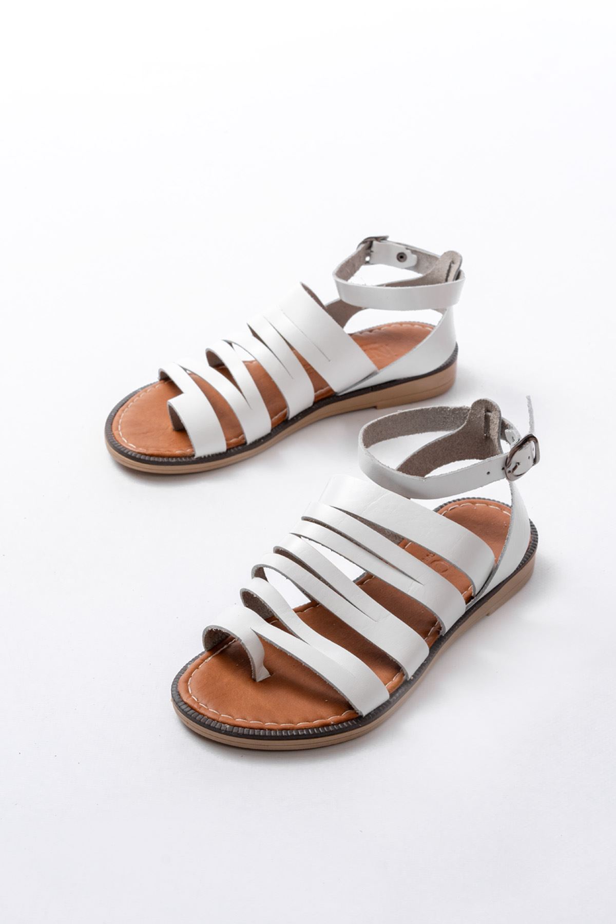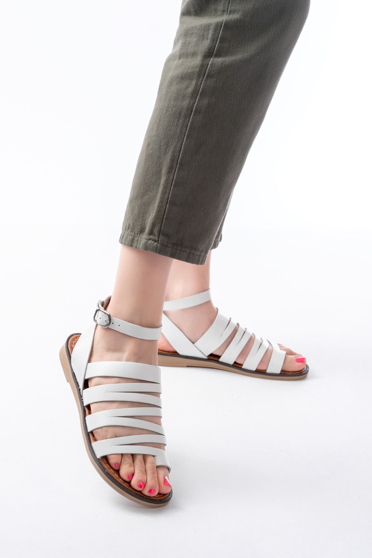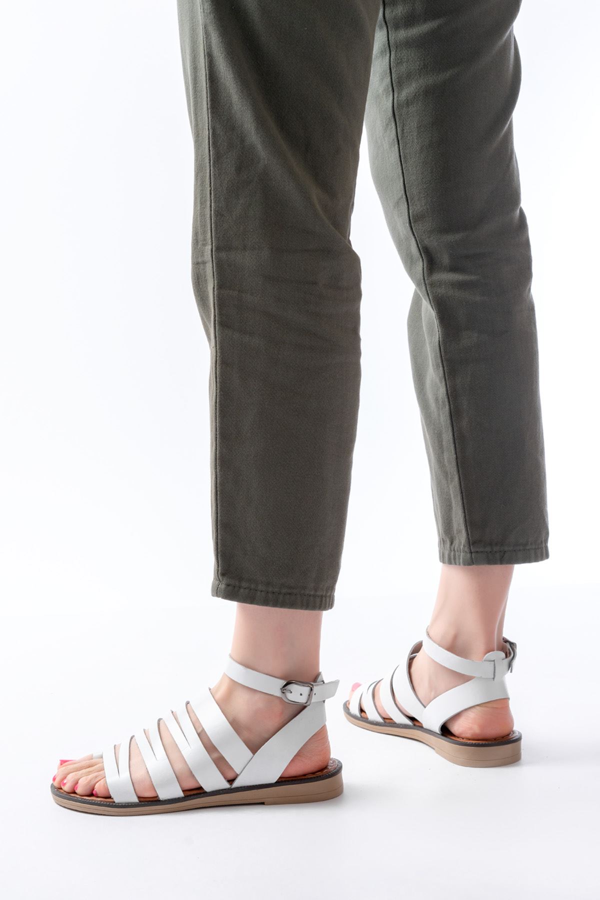 205-041 Beyaz Ortopedik Hakiki Deri Kadın Sandalet
