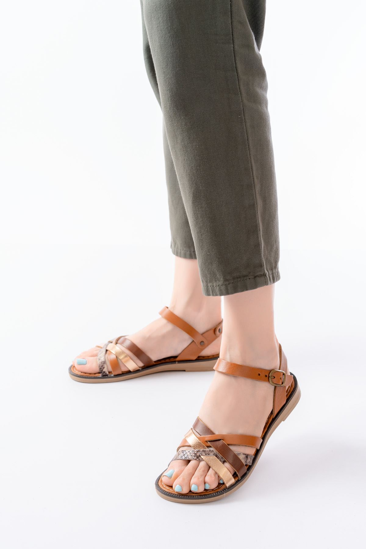 205-093 Taba Garni Hakiki Deri Ortopedik Taban Kadın Sandalet