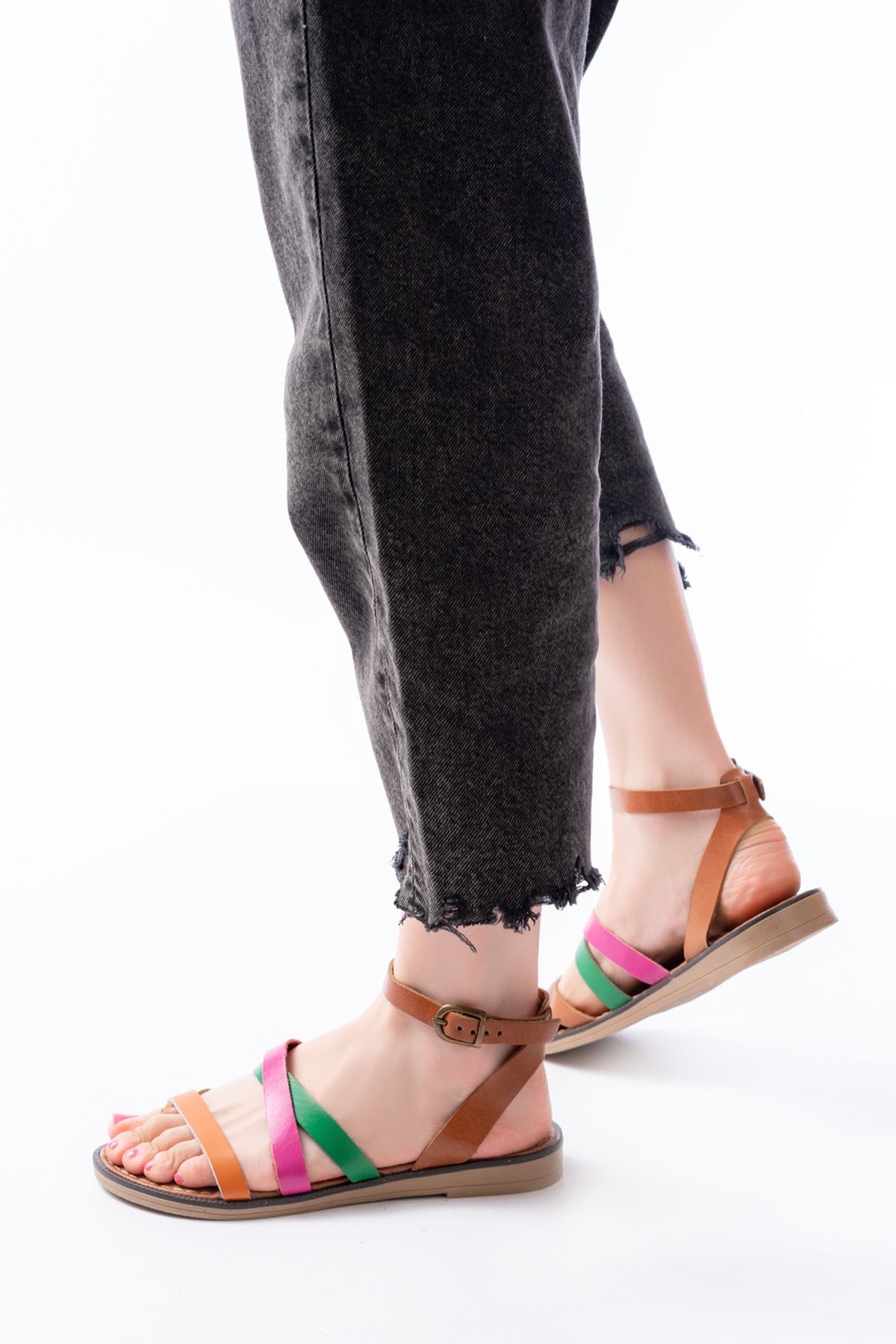 205-209 Multi Hakiki Deri Tokalı Parmak Arası Kadın Sandalet