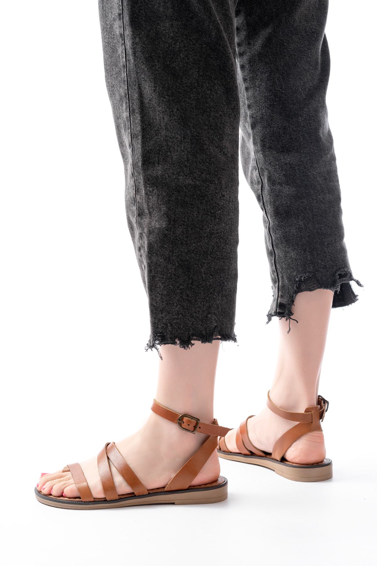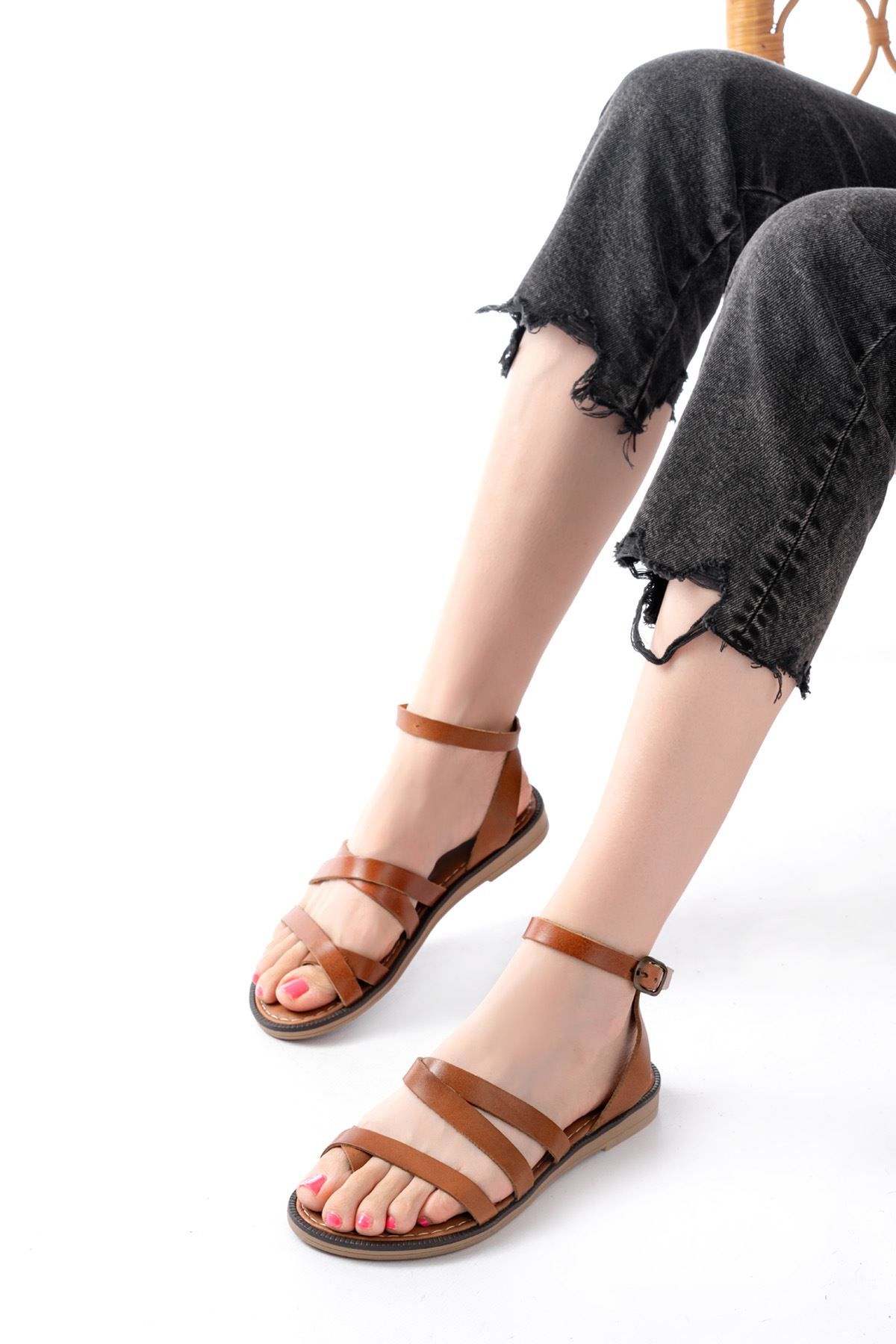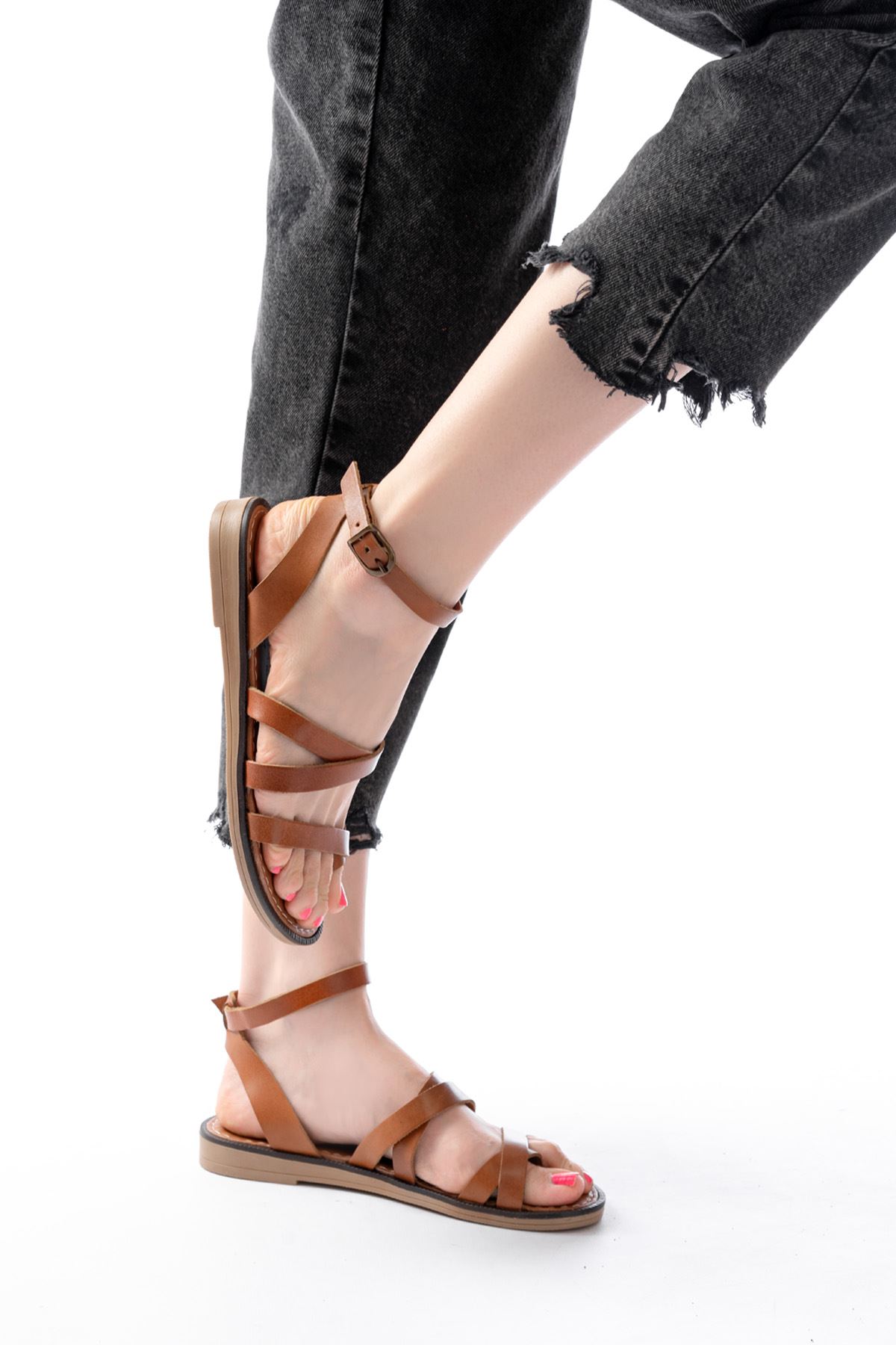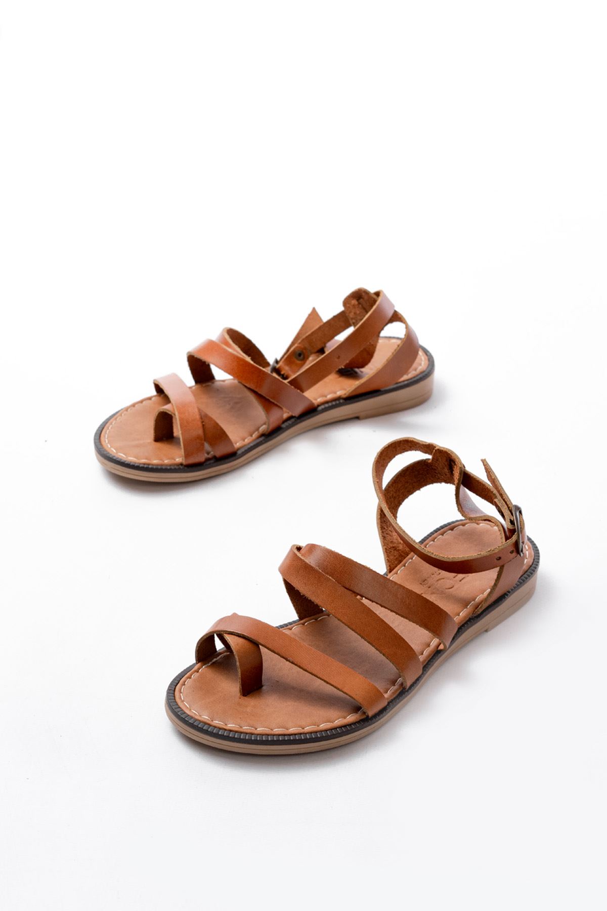 205-209 Taba Hakiki Deri Tokalı Parmak Arası Kadın Sandalet