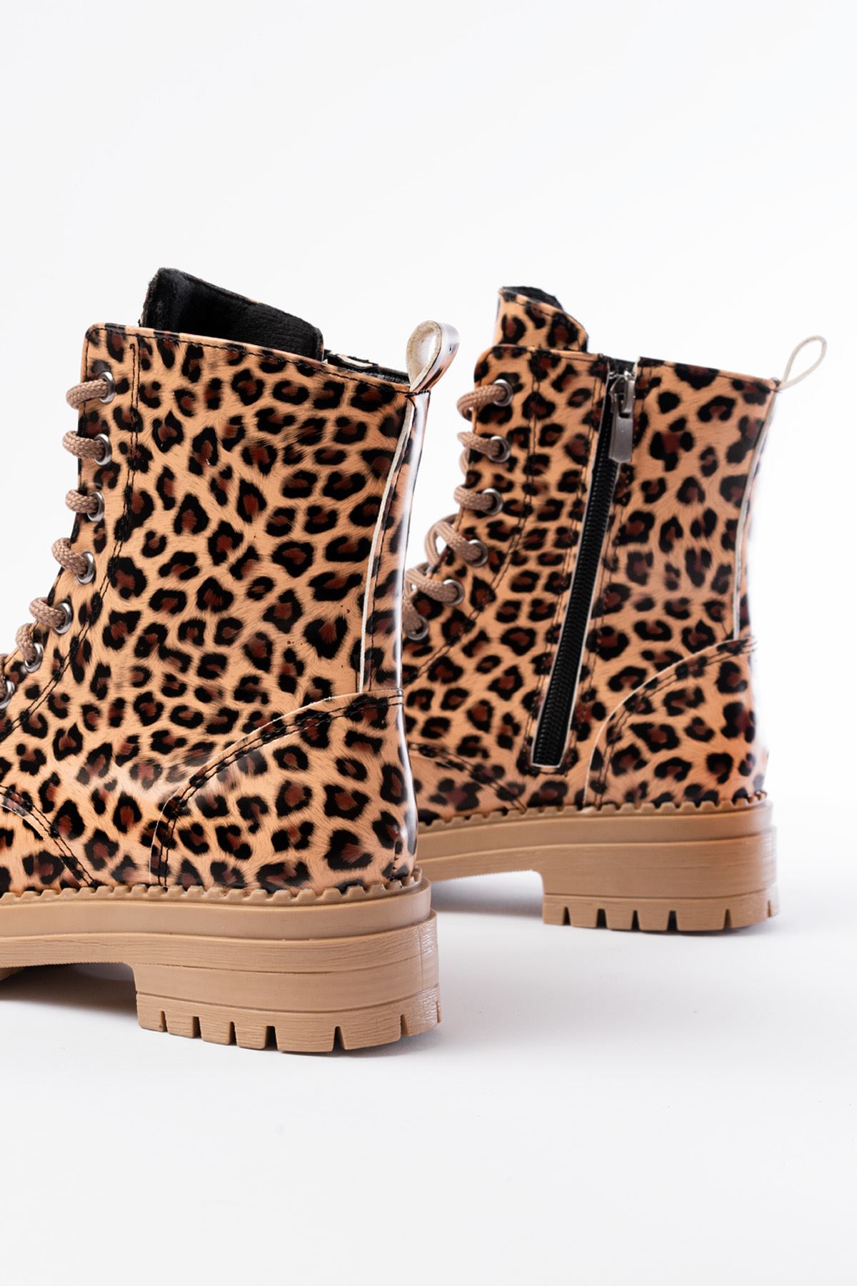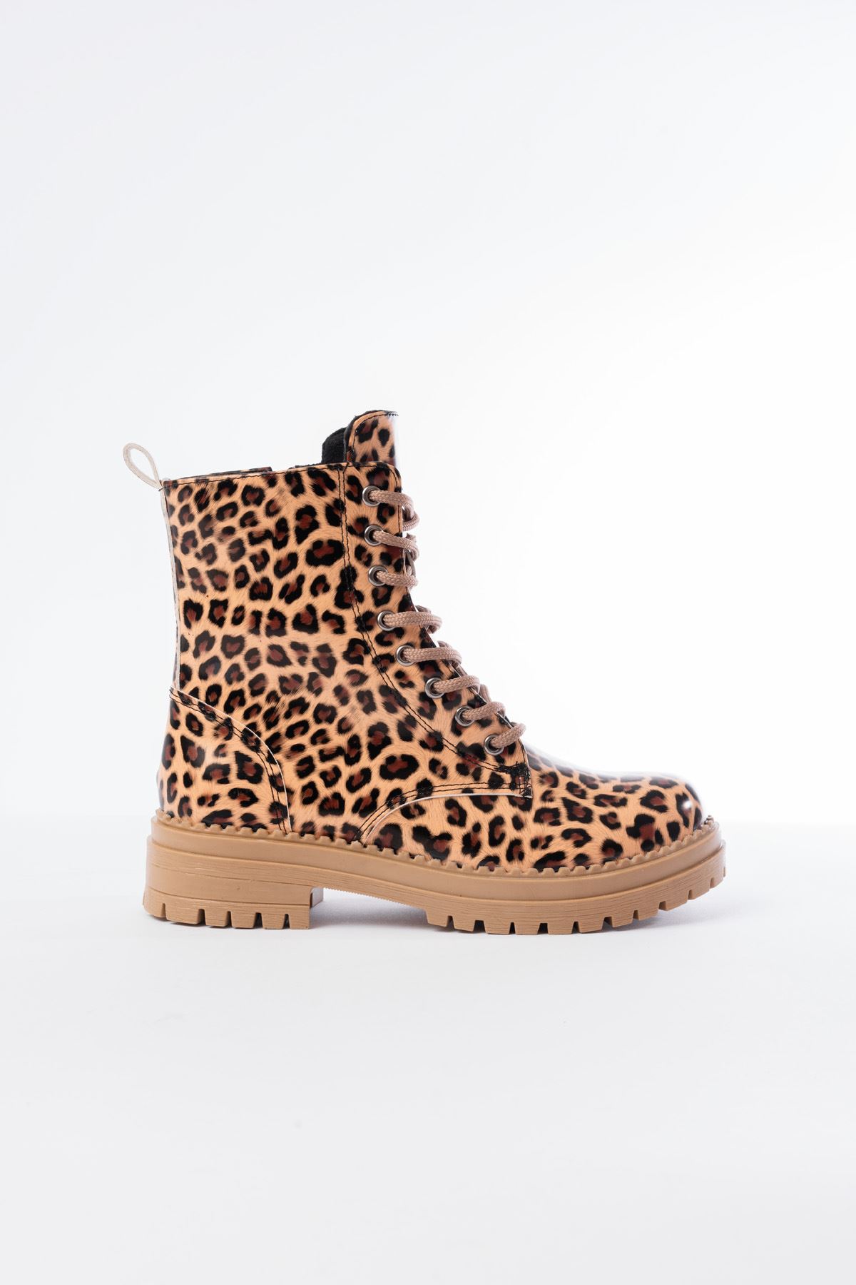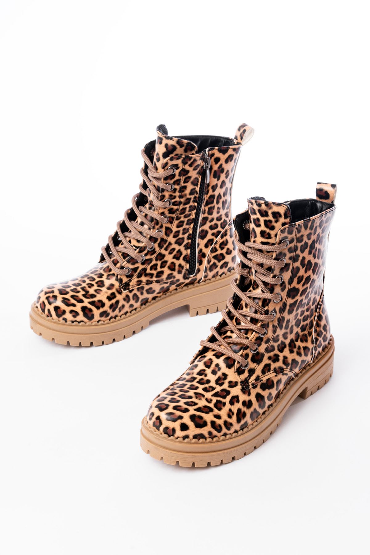 2121-356 Parlak Leopar Bağcıklı Fermuarlı Günlük Kadın Bot
