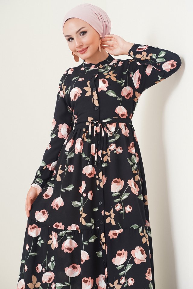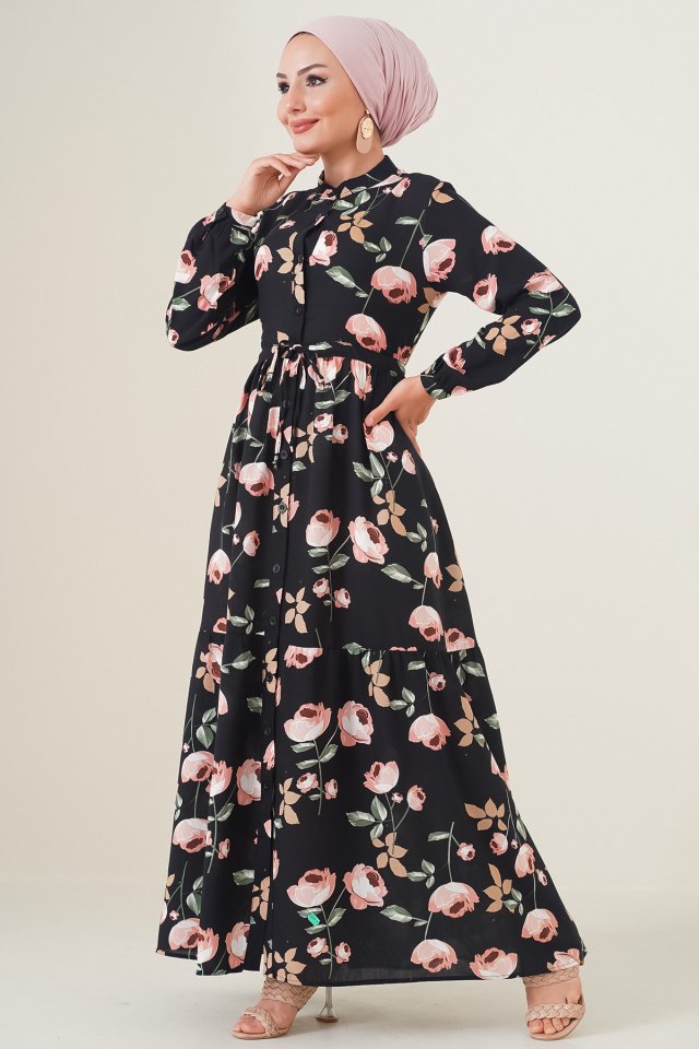 2144 Hakim Yaka Tesettür Elbise – E.Siyah