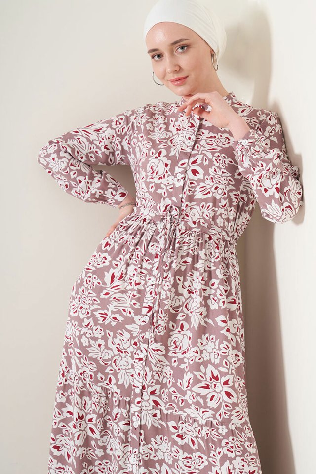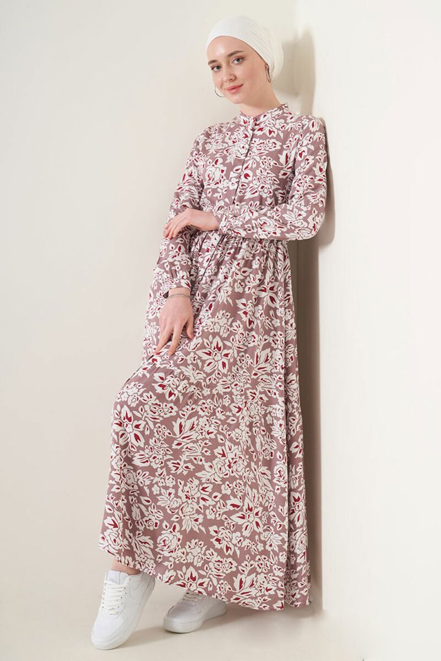 2144 Hakim Yaka Tesettür Elbise – Gül Kurusu