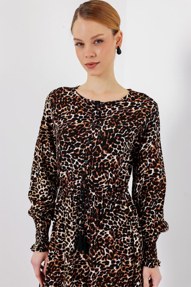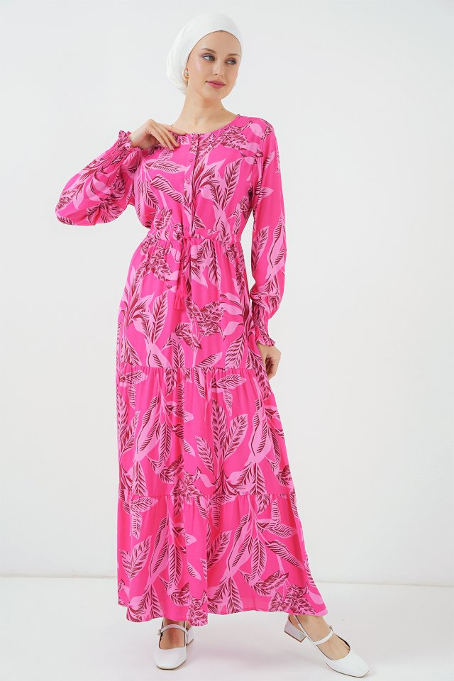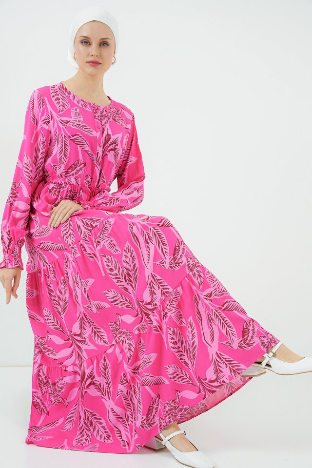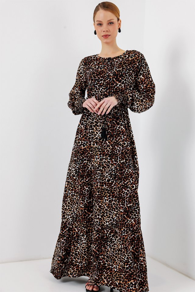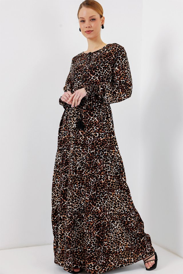 2145 Desenli Tesettür Elbise – C. Kahverengi