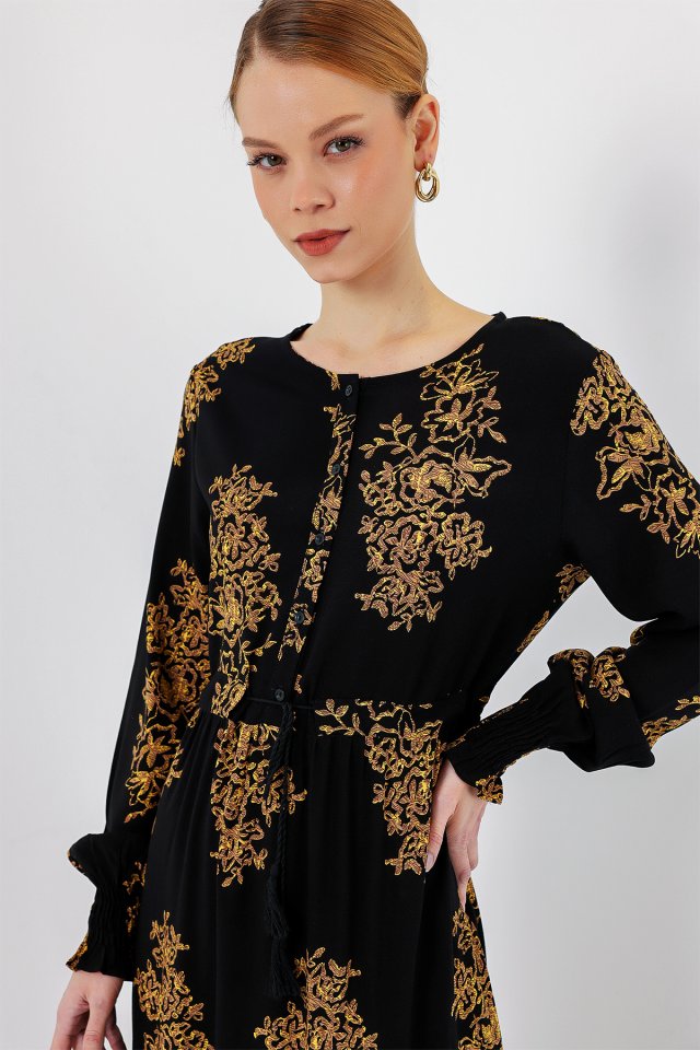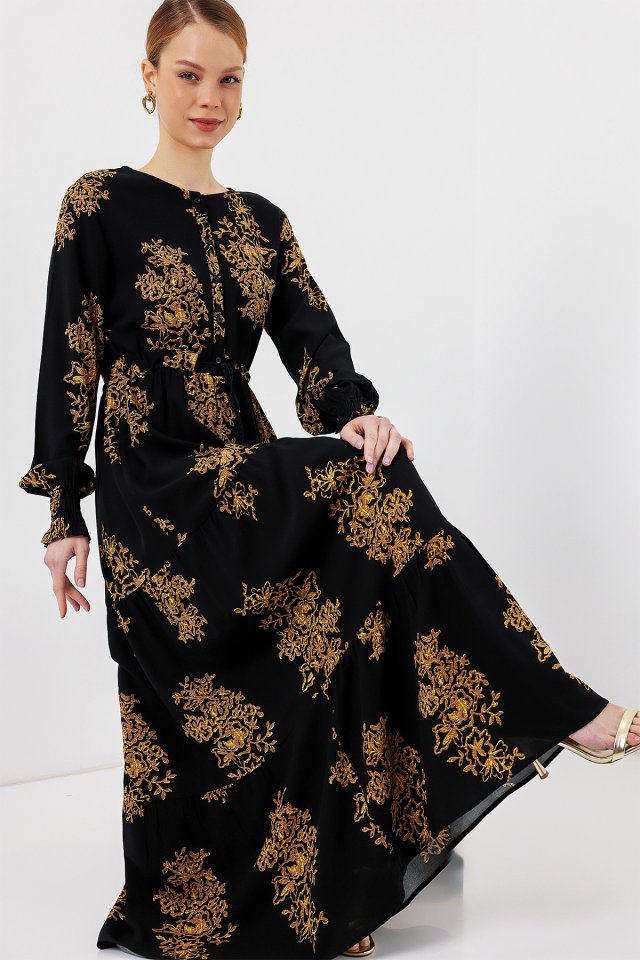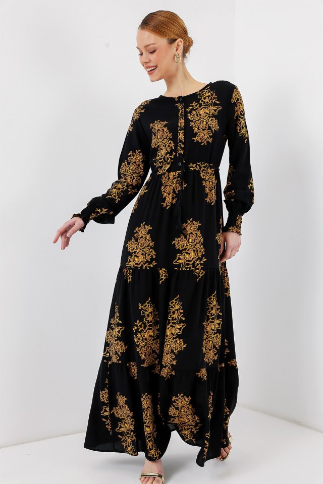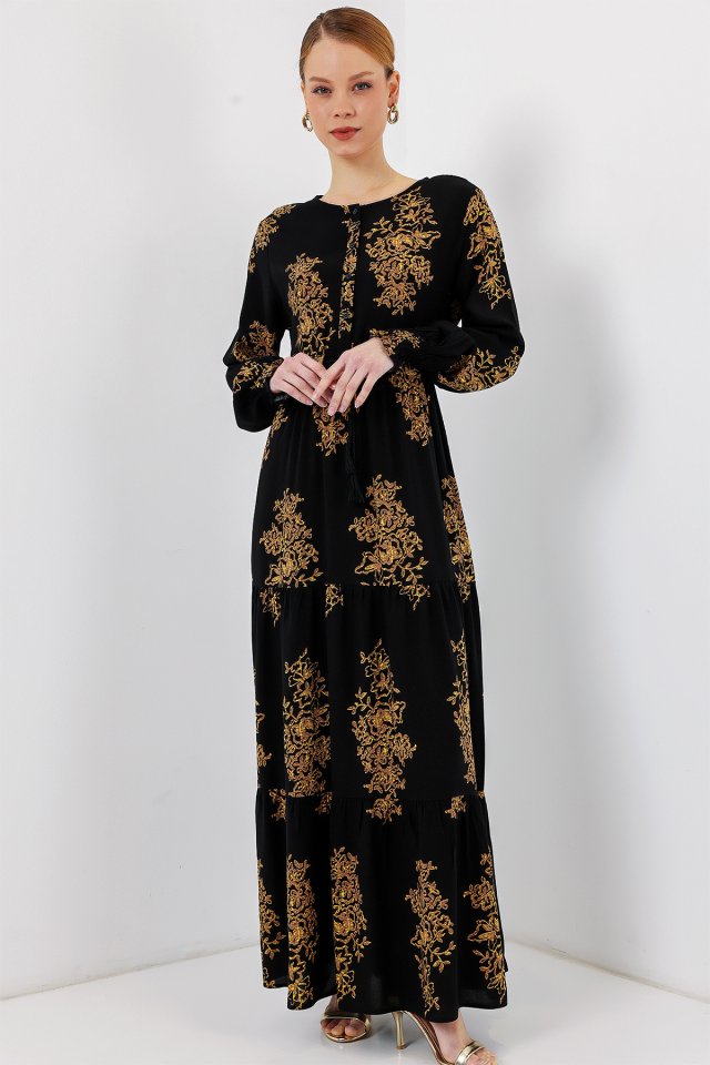 2145 Desenli Tesettür Elbise – C.Siyah