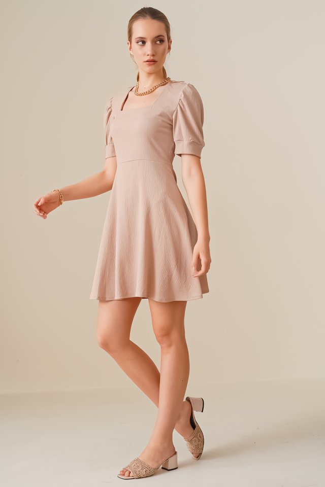 2339 Kare Yaka Örme Elbise – Bisküvi