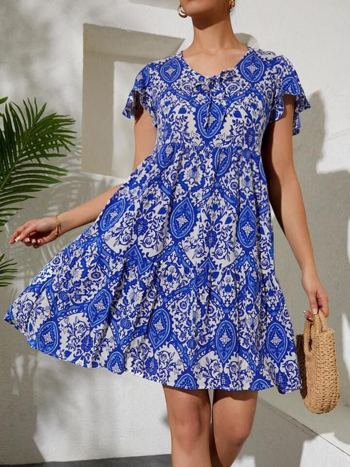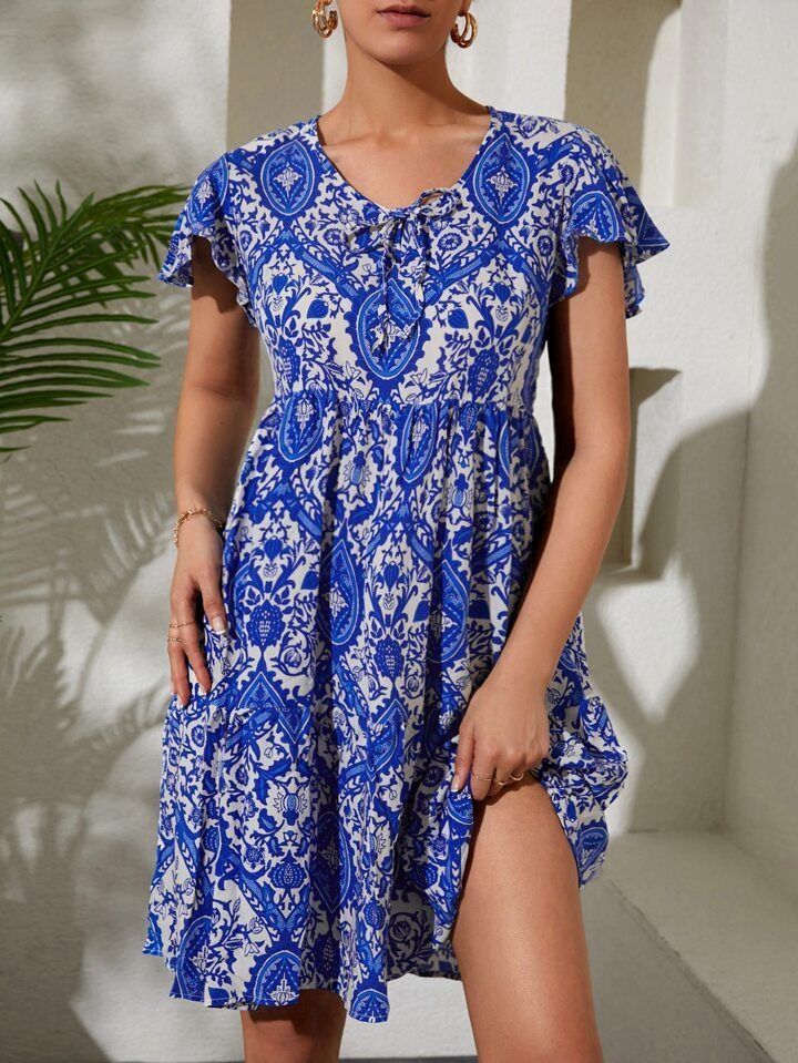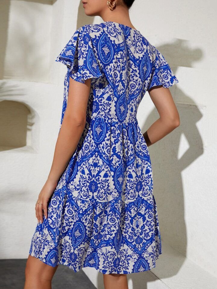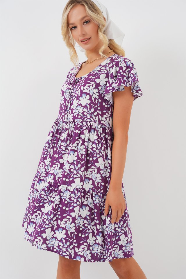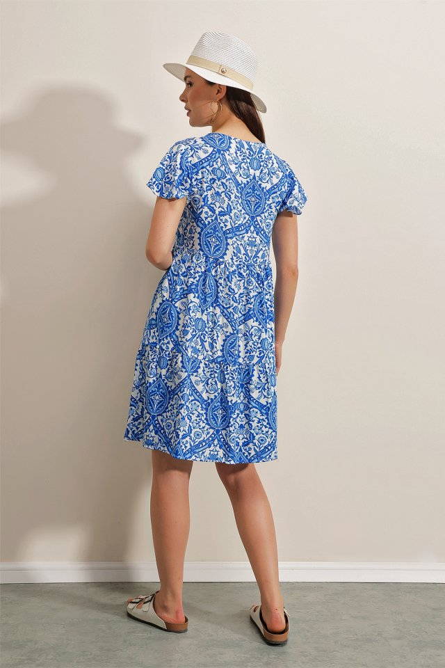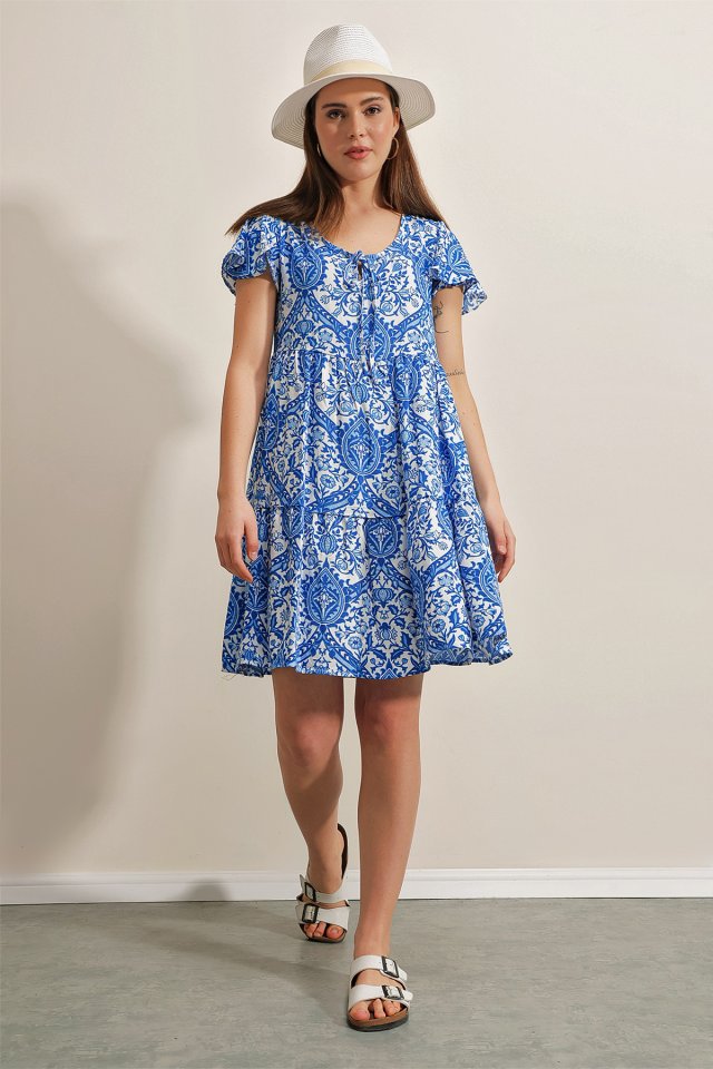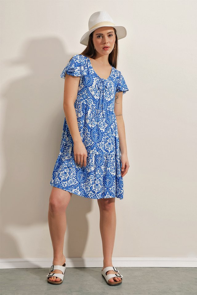 2352 V Yaka Kısa Elbise – Kırmızı