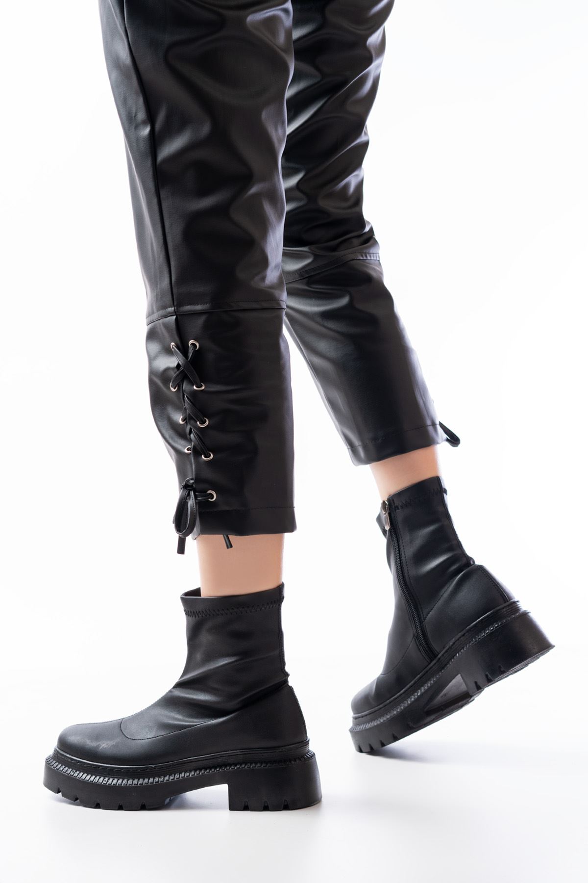 236-2011 Siyah Streç Fermuarlı Günlük Kadın Bot