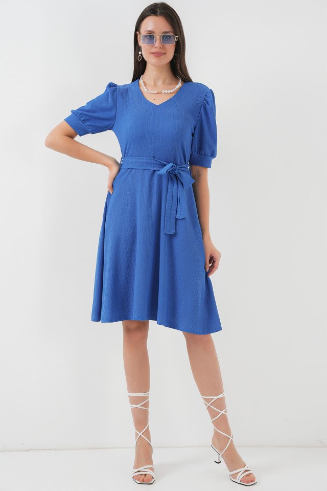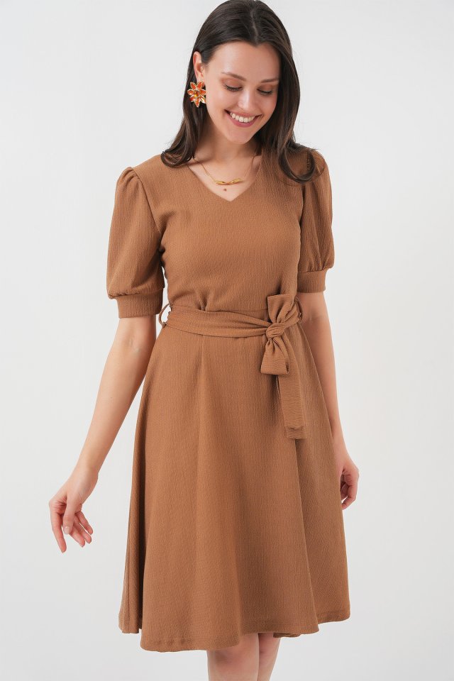2370 Kuşaklı Örme Elbise – Kırmızı