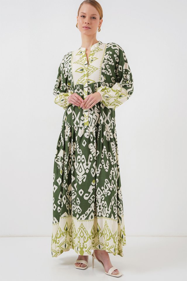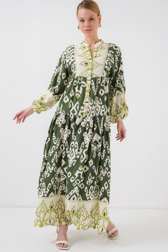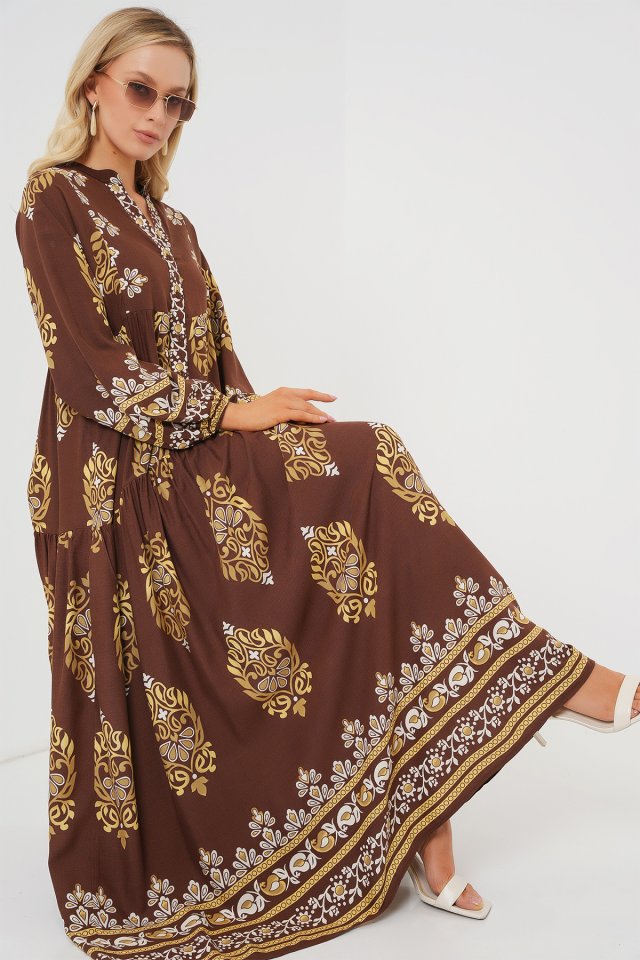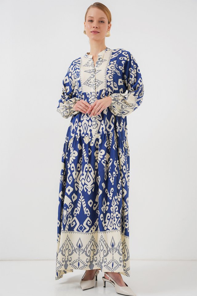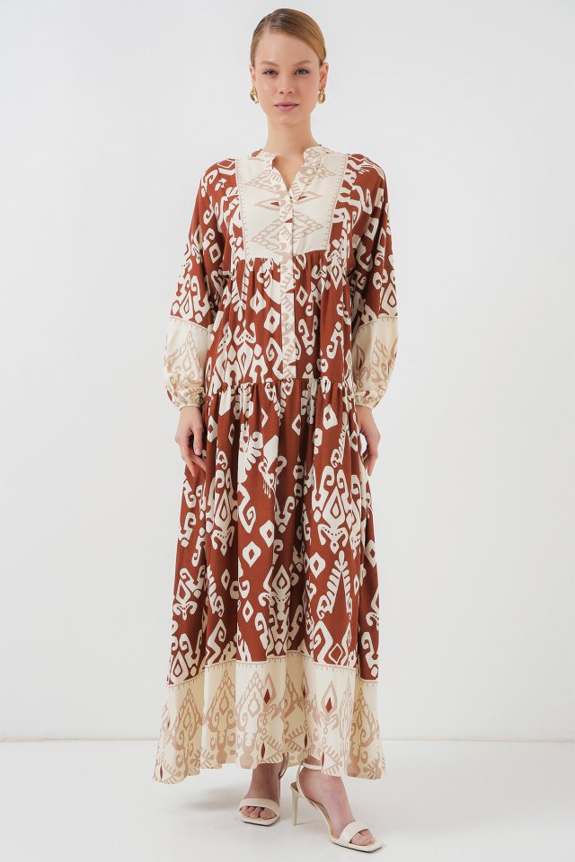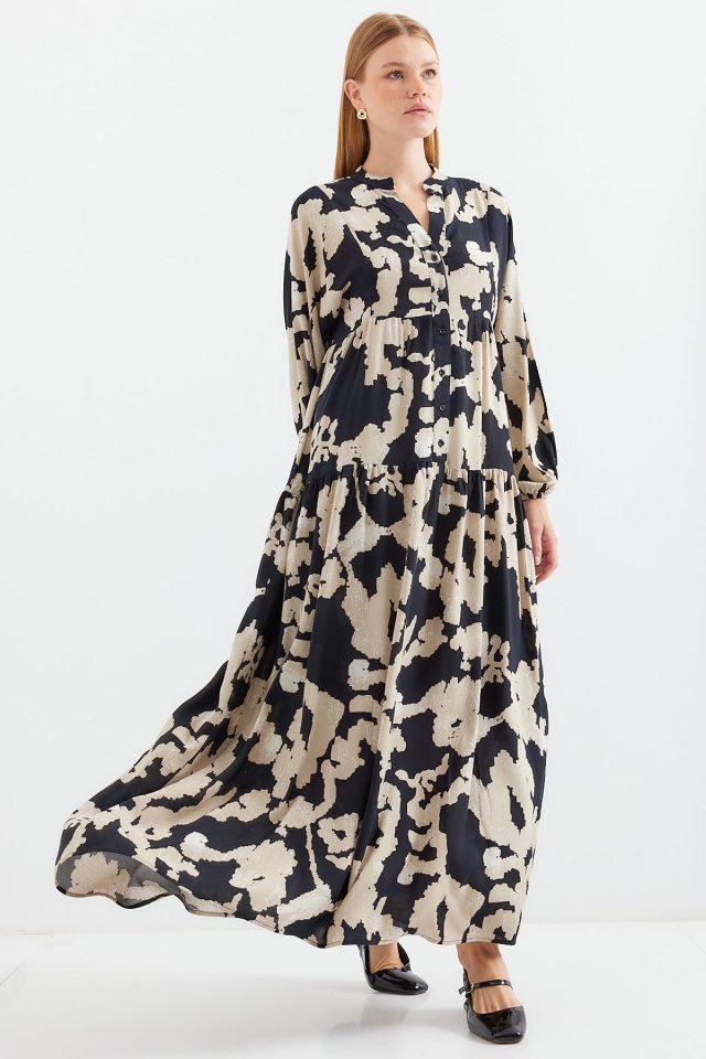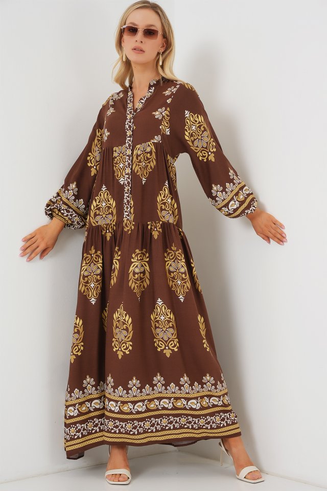 2423 Otantik Desenli Tesettür Elbise – Siyah 6