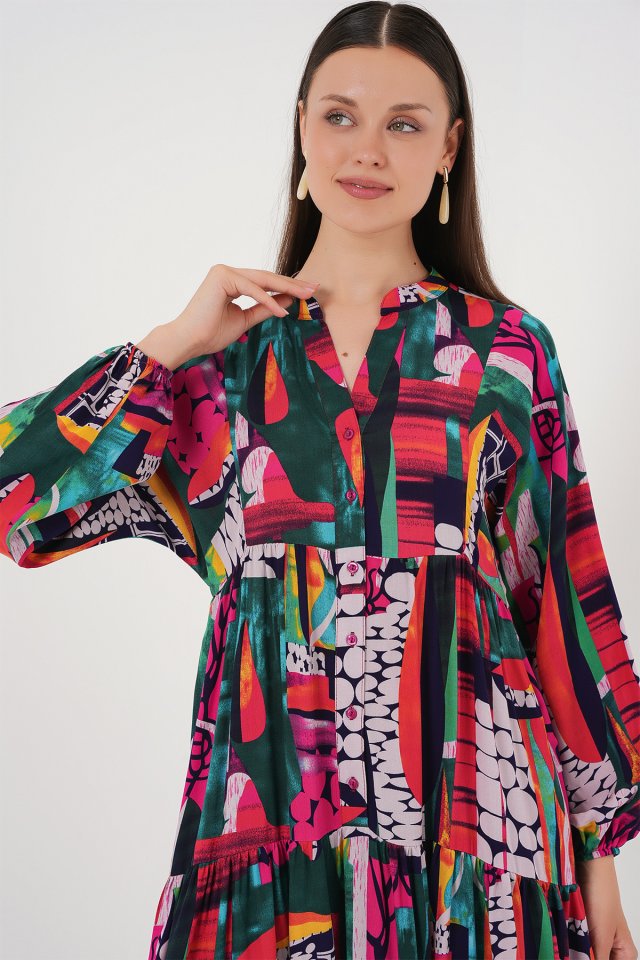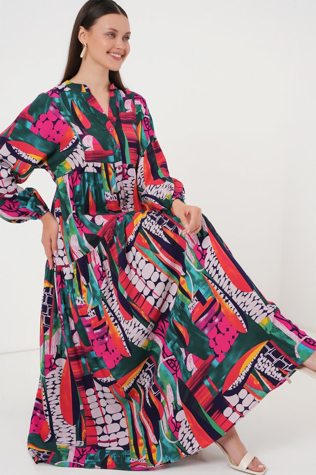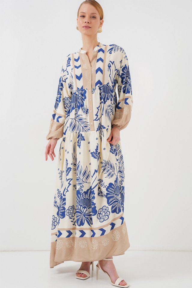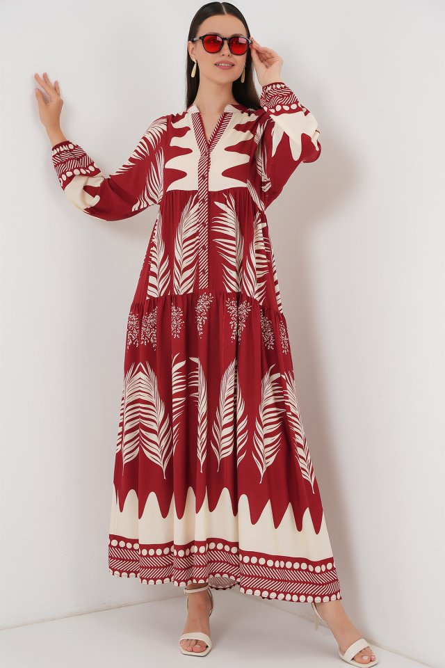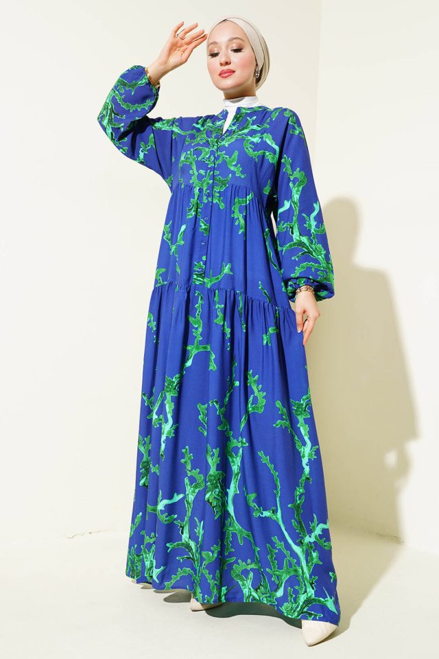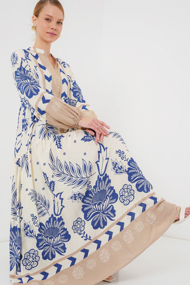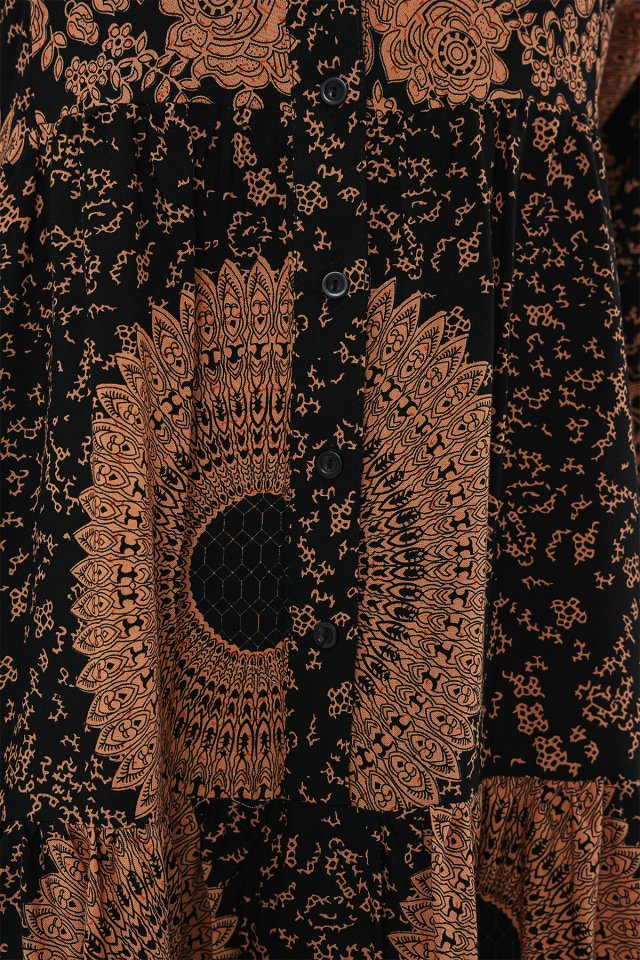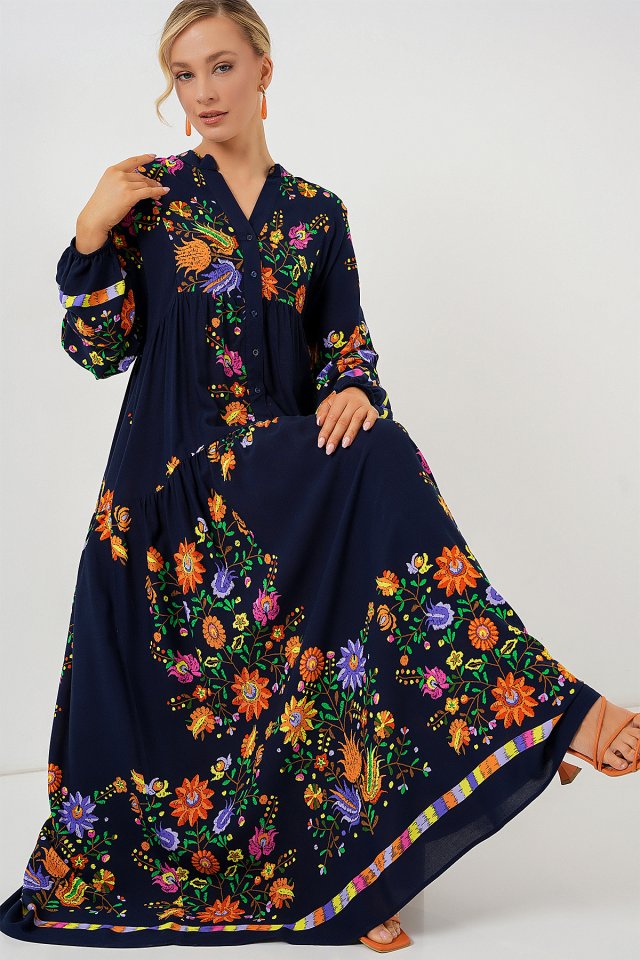 2423 Otantik Desenli Tesettür Elbise – Siyah 6