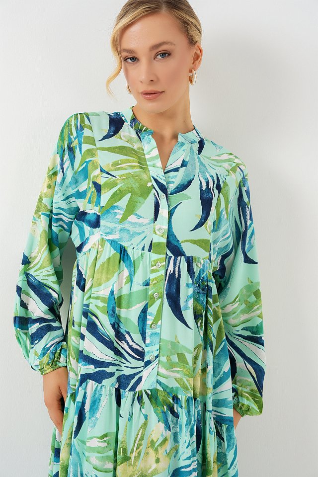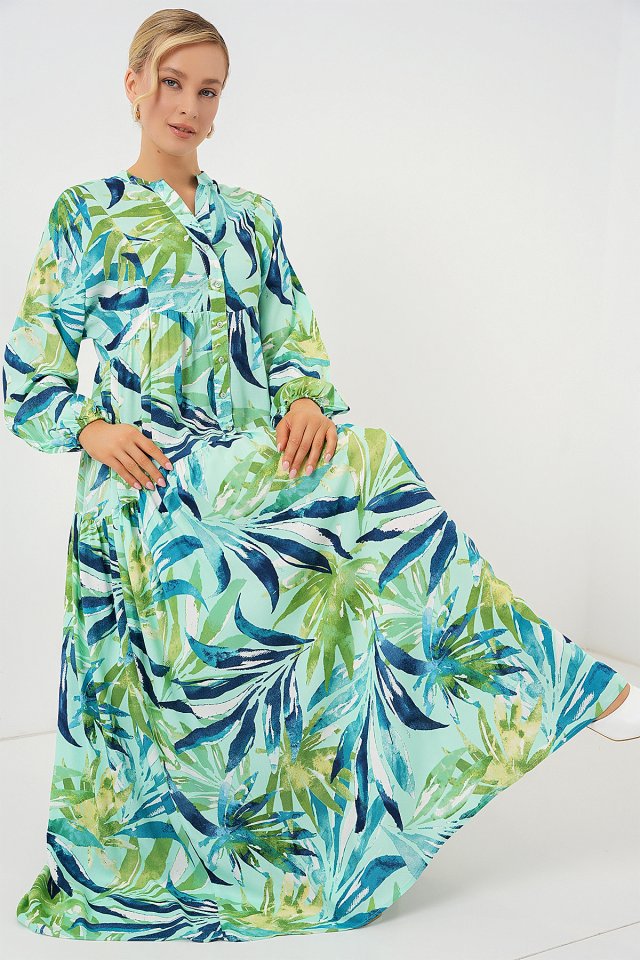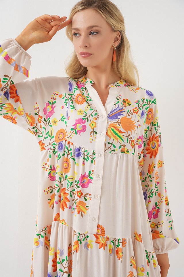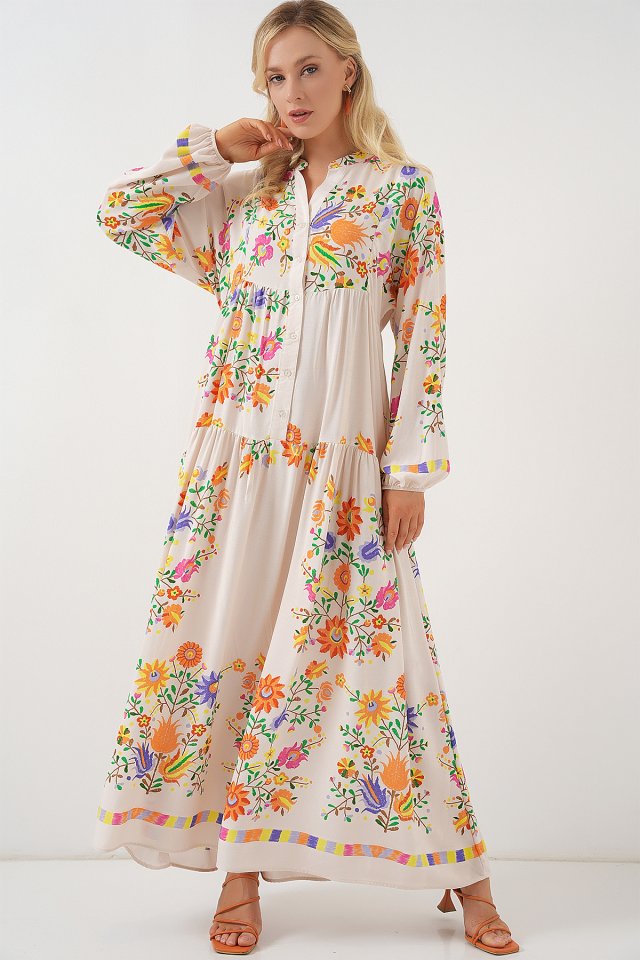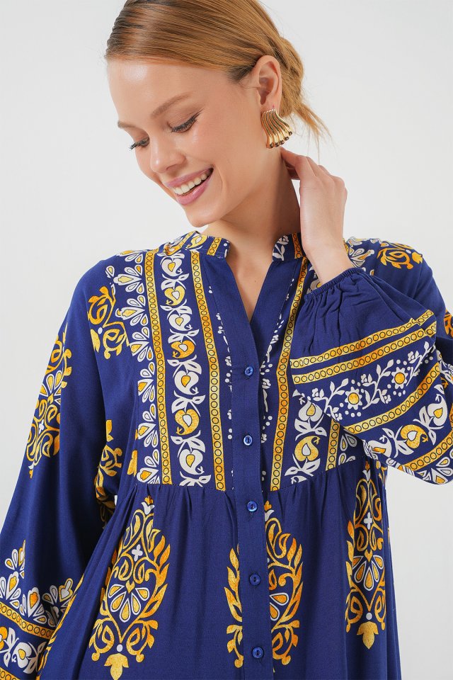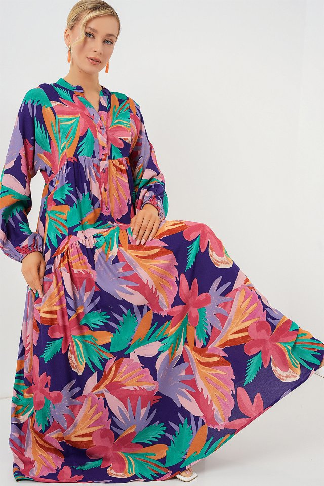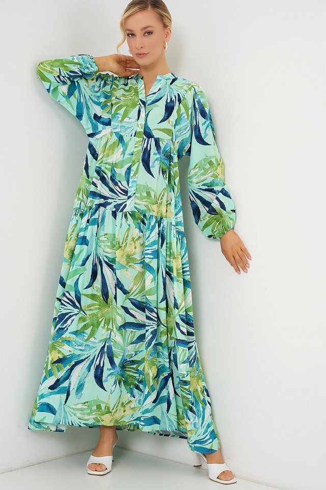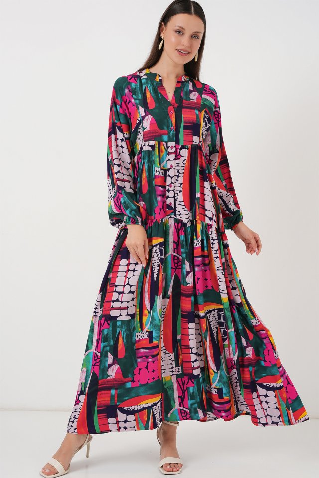 2423 Otantik Desenli Tesettür Elbise – Siyah 6