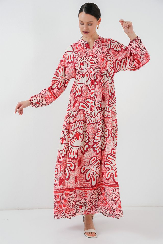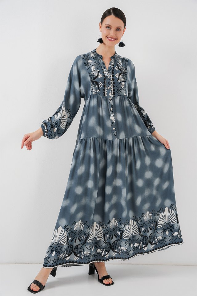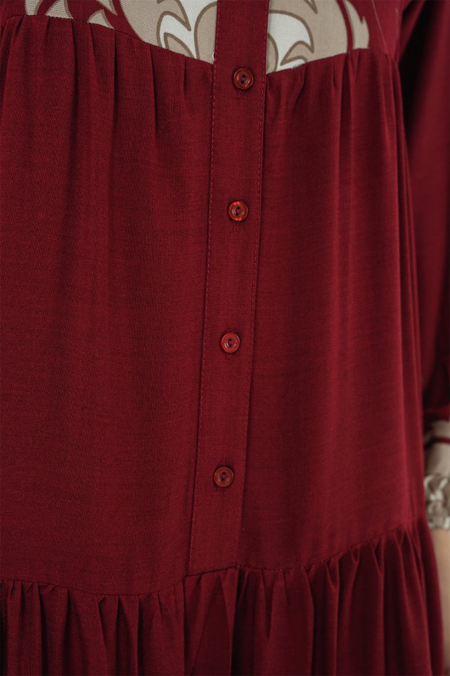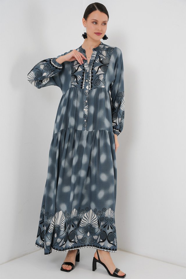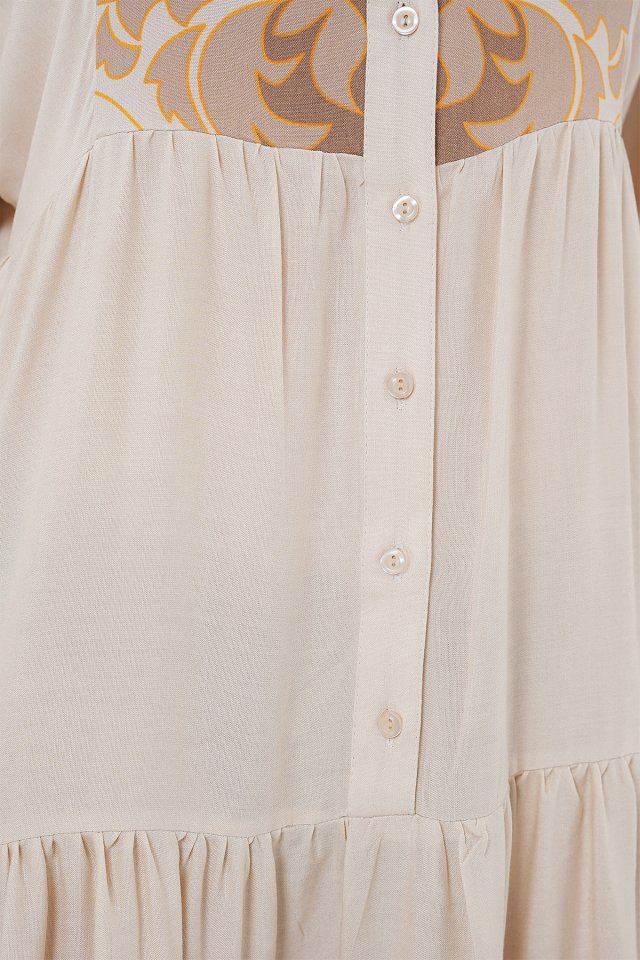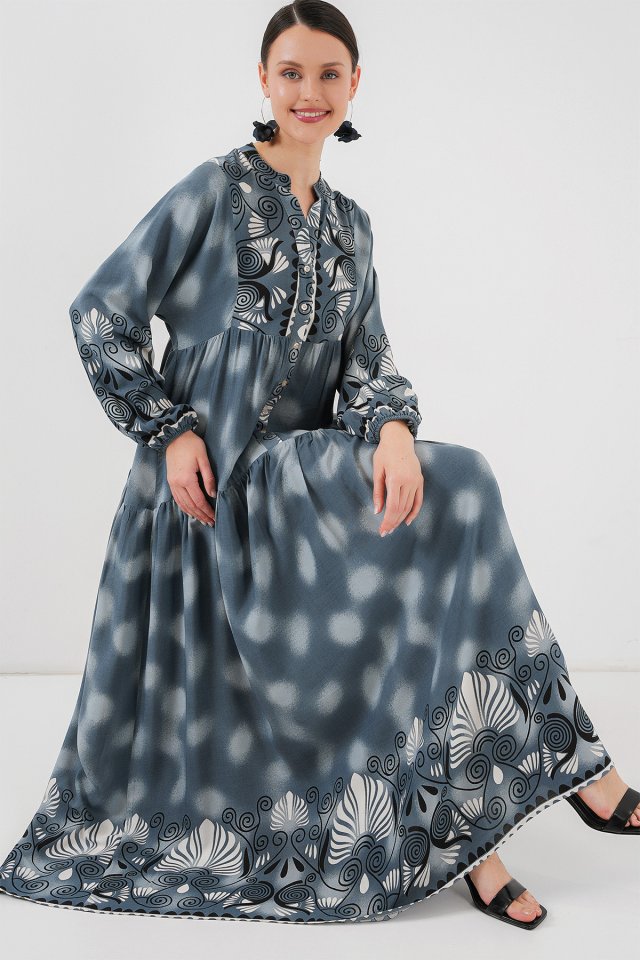 2423 Otantik Desenli Tesettür Elbise – T. Ekru