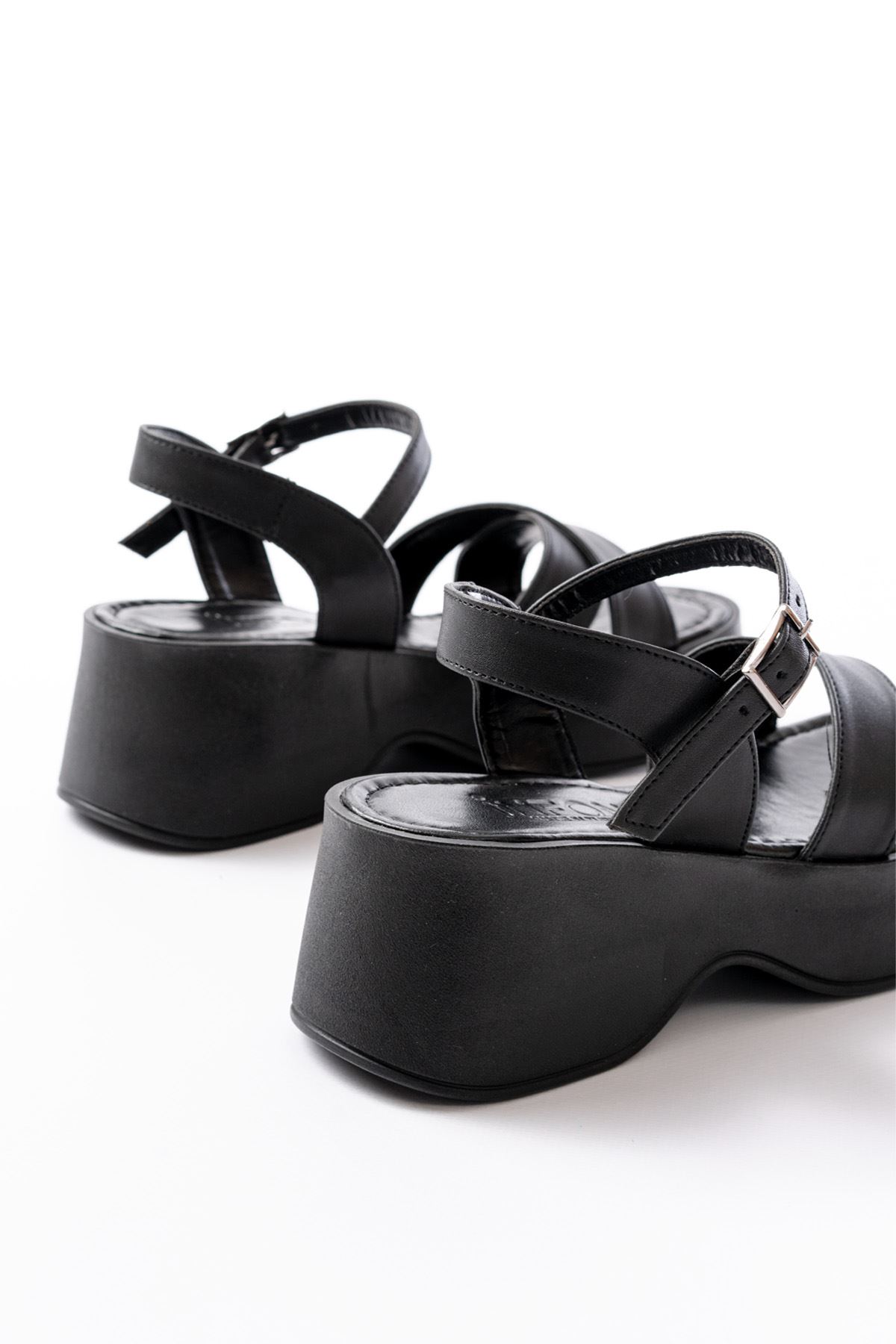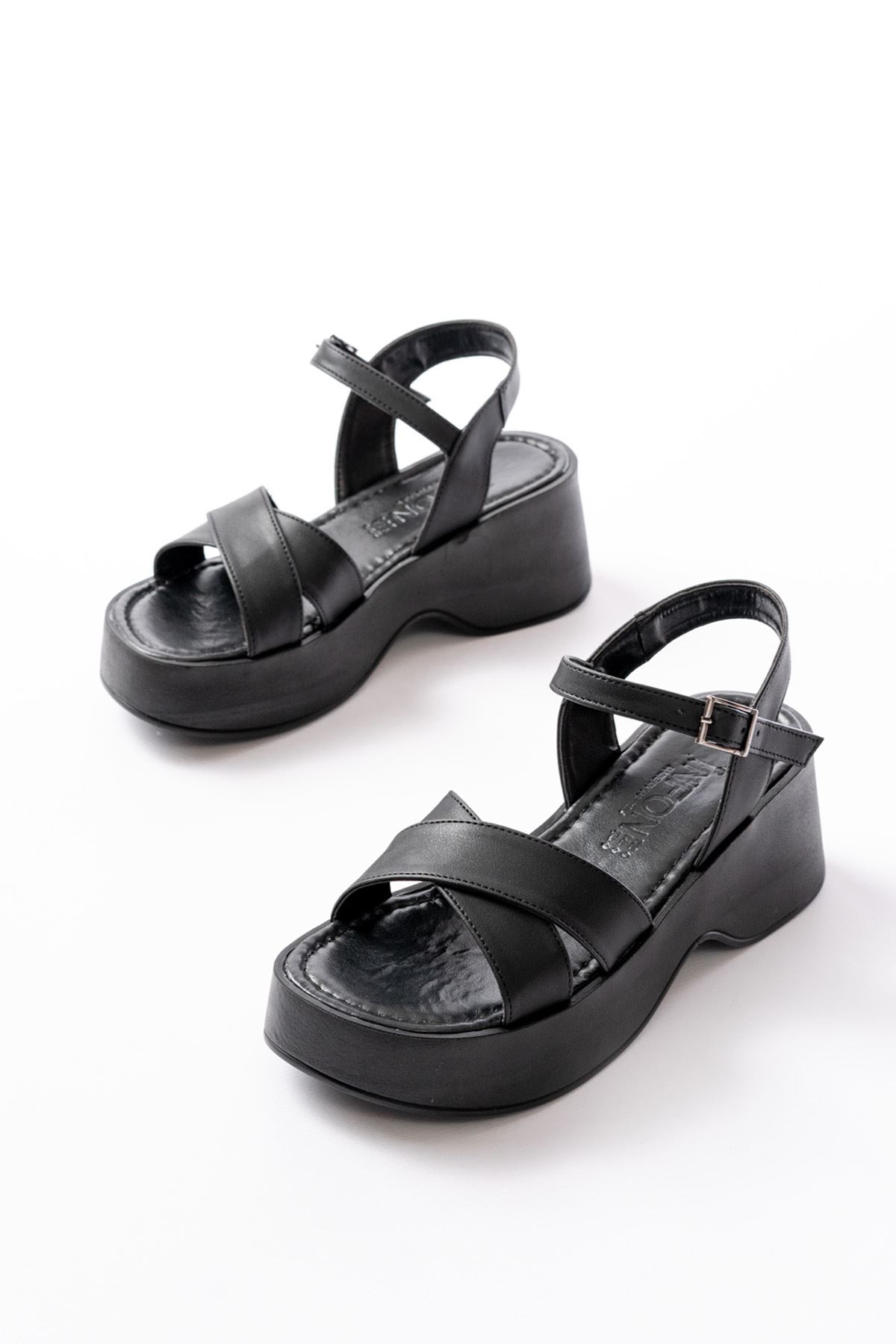 24414-1005 Siyah Günlük Çapraz Dolgu Topuk Kadın Sandalet