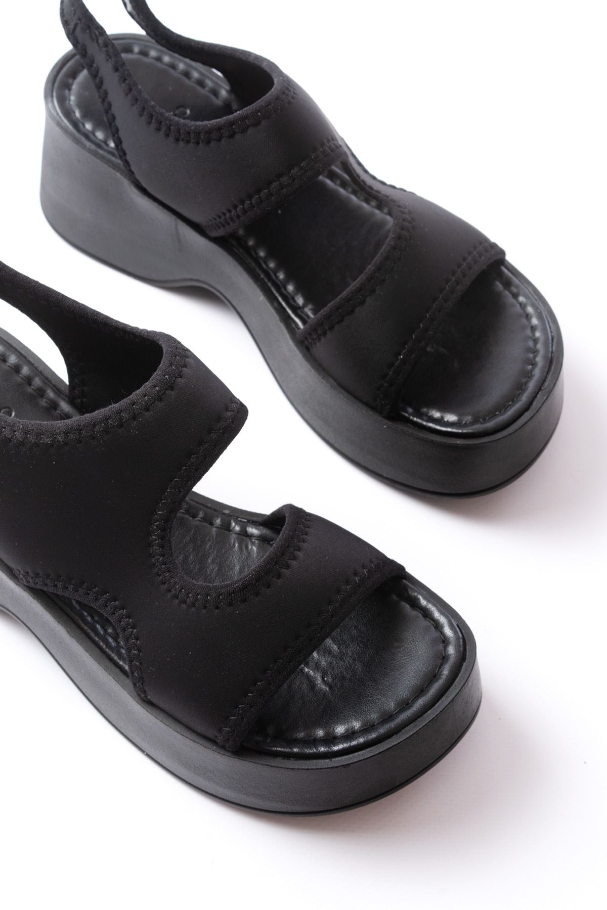 24414-573 Siyah Dalgıç Günlük Dolgu Topuk Kadın Sandalet