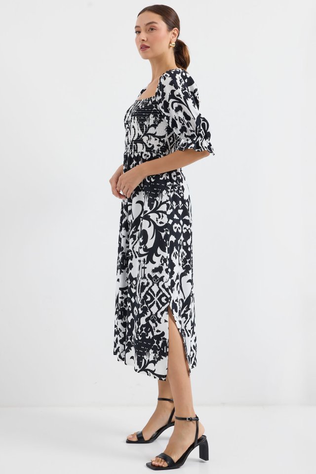 2512 Desenli Yırtmaçlı Elbise – Siyah