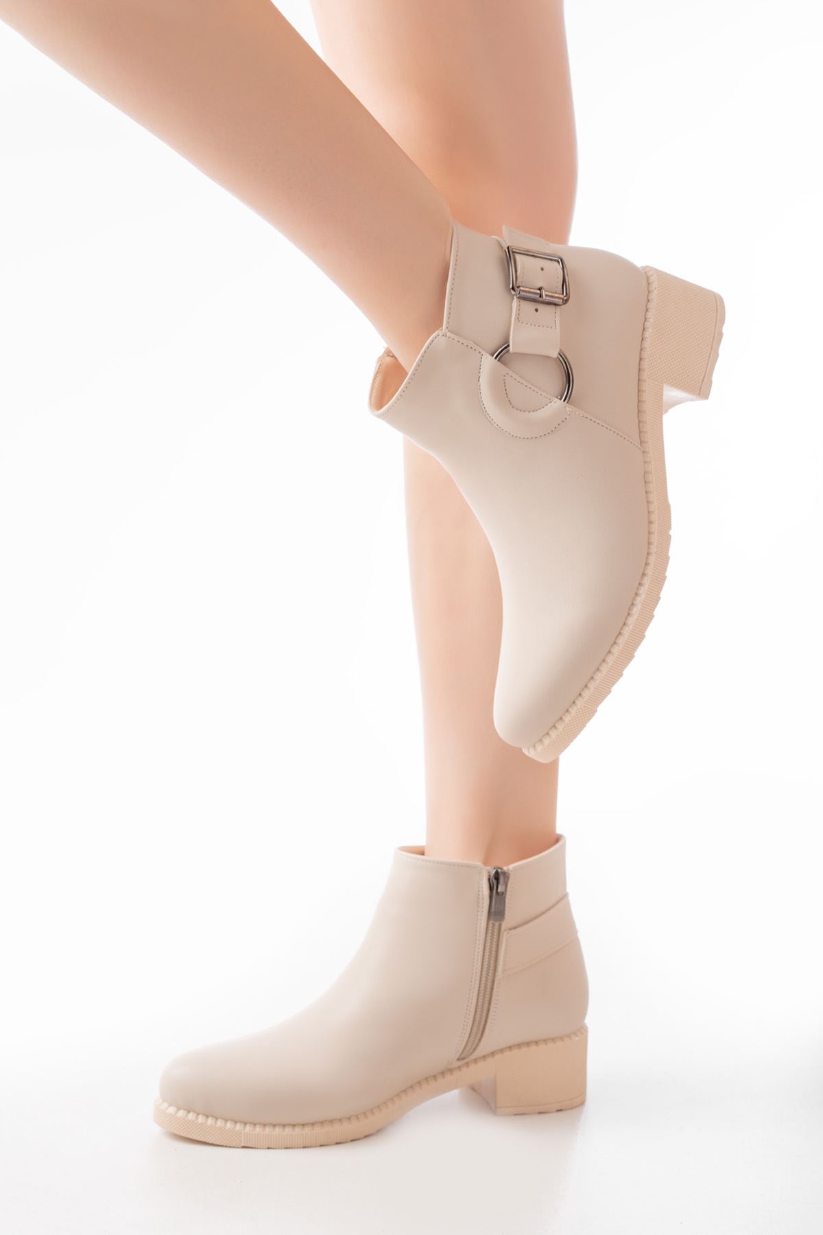 270-3030 Bej Toka Aksesuarlı Fermuarlı Günlük Kadın Bot