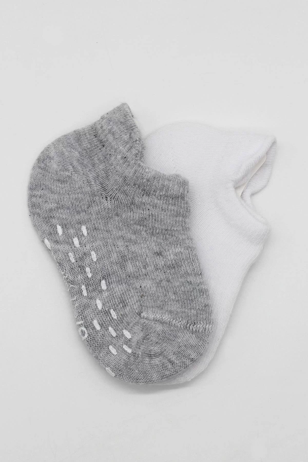 2’li Sneakers Kaymaz Basic Penye Çorap Bs20103 Gri Beyaz