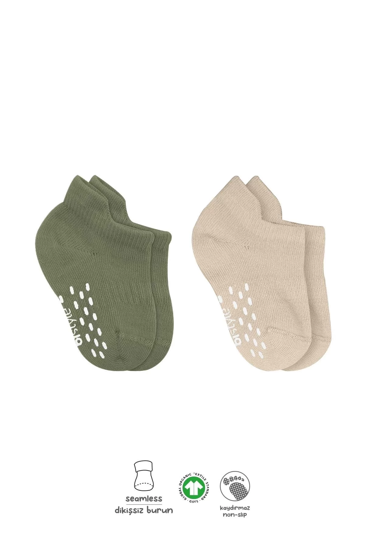 Bistil Organik Kız Erkek Bebek Dikişsiz Basic Kaymaz Altı Taban Kaymaz Kaydırmaz Sneakers Patik Çorap Renkli Kokulu Pamuklu Yumuşak Antialerjik