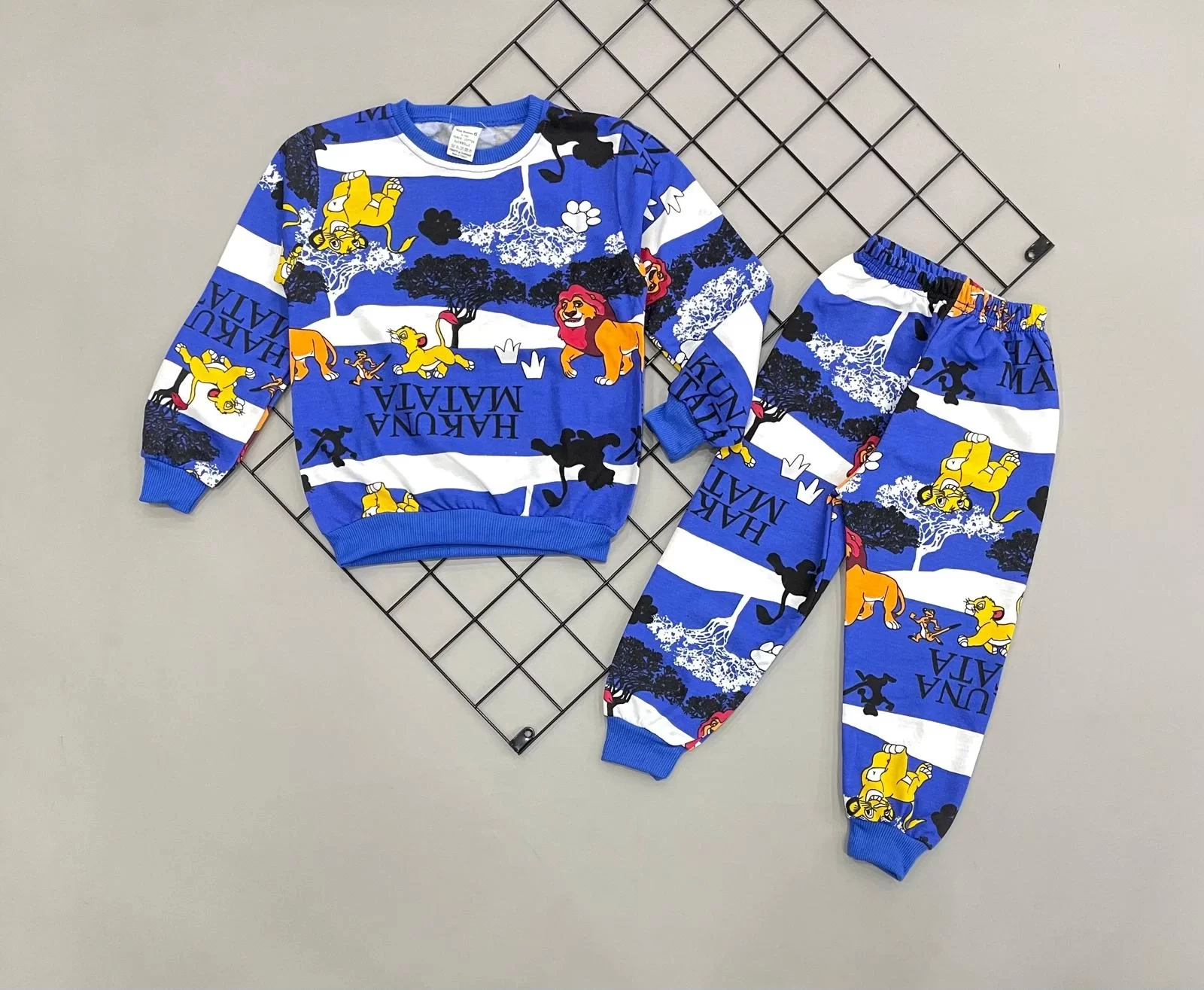 3-4-5-6 Yaş Aslan Kral Baskılı Şardonlu Uzun Kollu Kız Erkek Çocuk Takımı Saks Mavisi