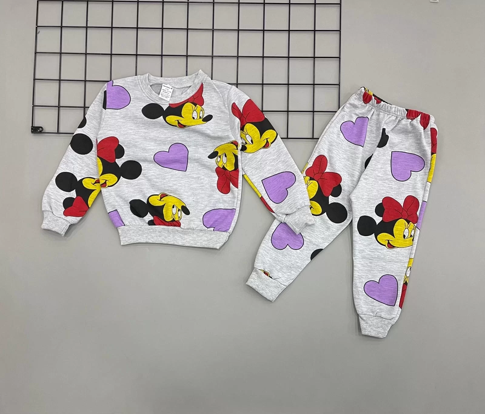 3-4-5-6 Yaş Bayan Mickey Baskılı Şardonlu Uzun Kollu Kız Çocuk Takımı Gri adet