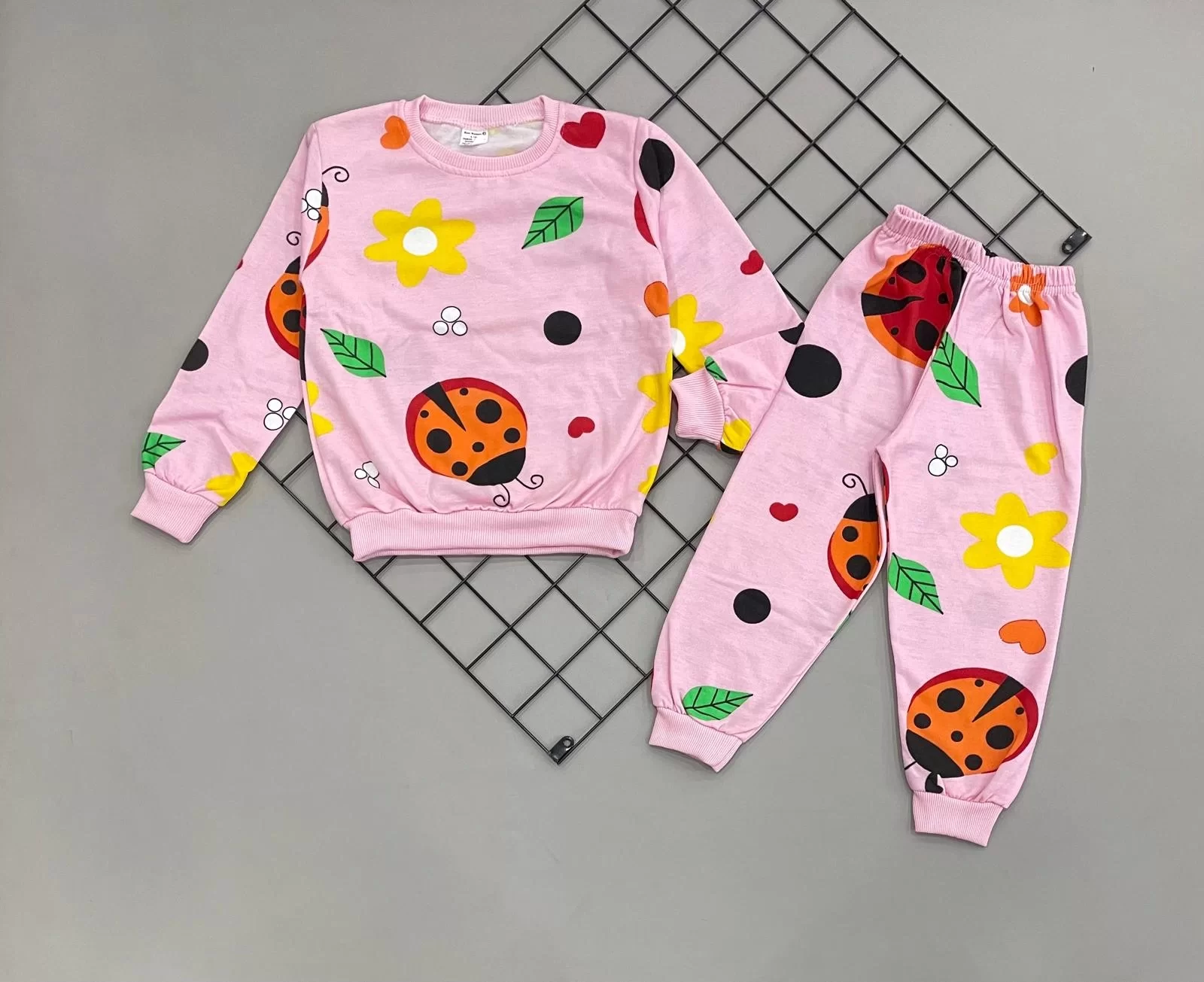 3-4-5-6 Yaş Uğur Böceği Baskılı Şardonlu Uzun Kollu Kız Çocuk Takımı