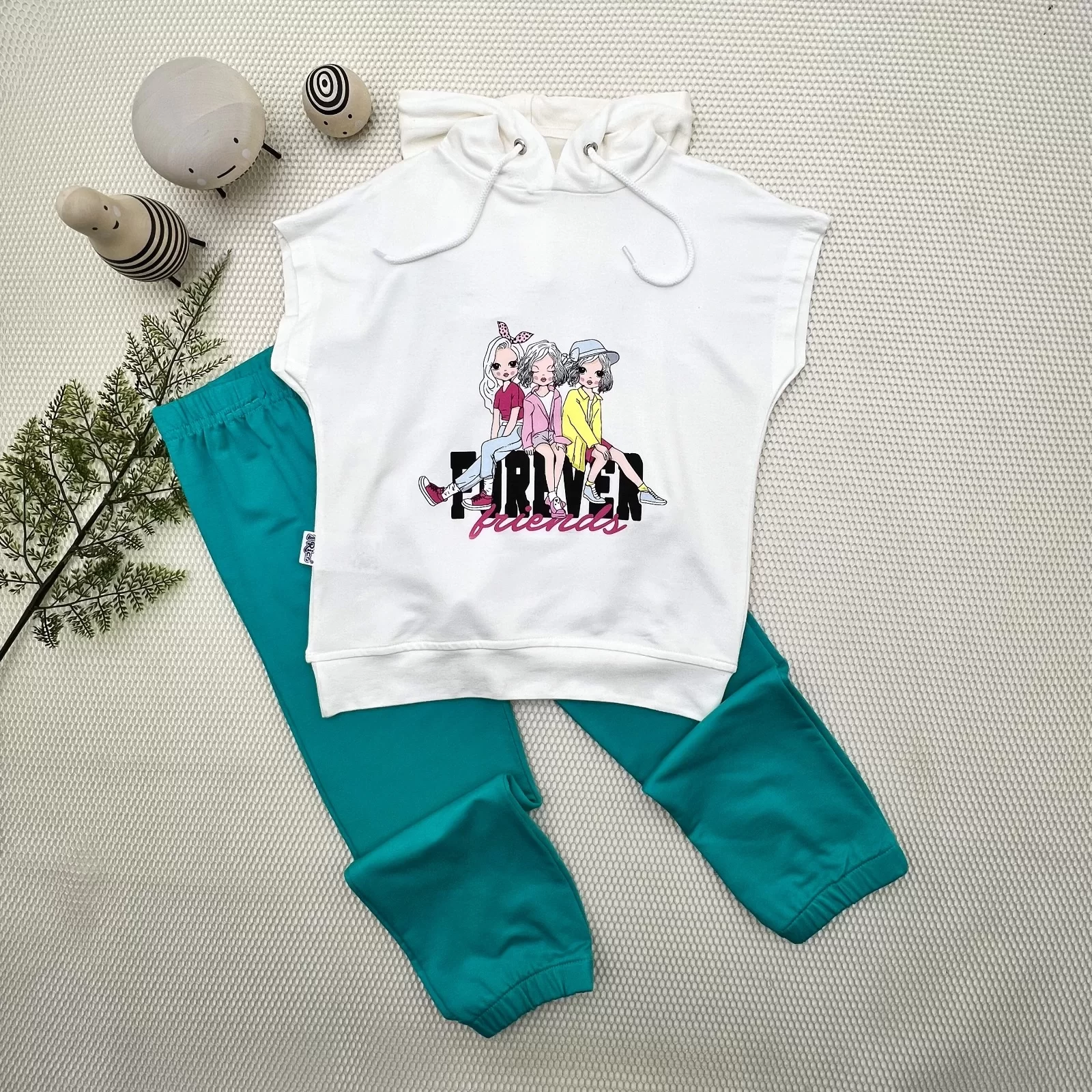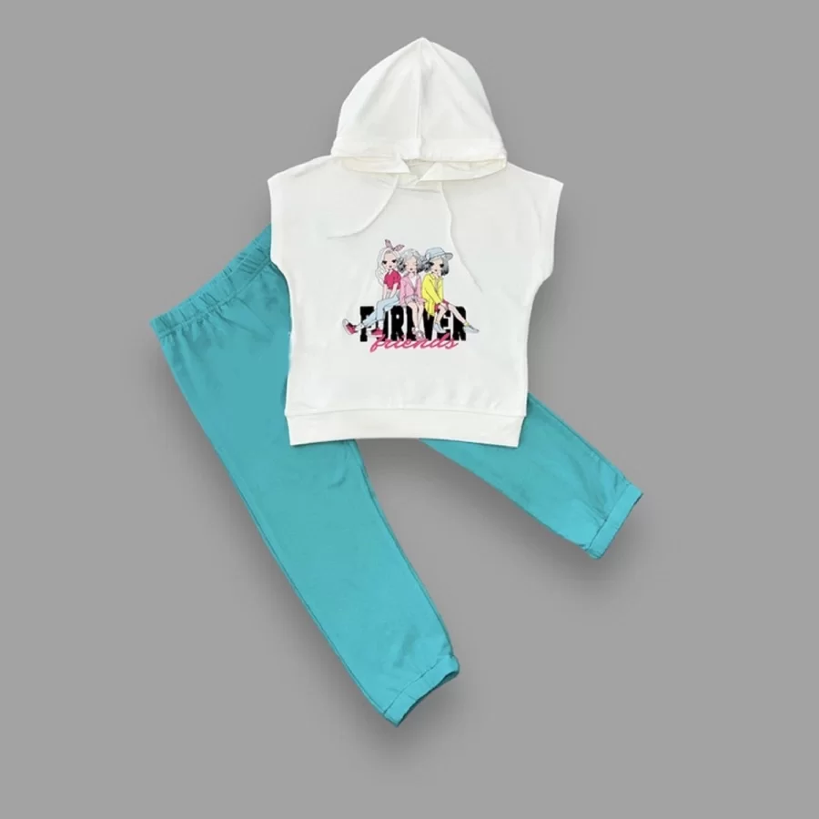 3-4-5 Yaş Forever Cici Kızlar Baskılı Kapşonlu 2li Kız Çocuk Takımı