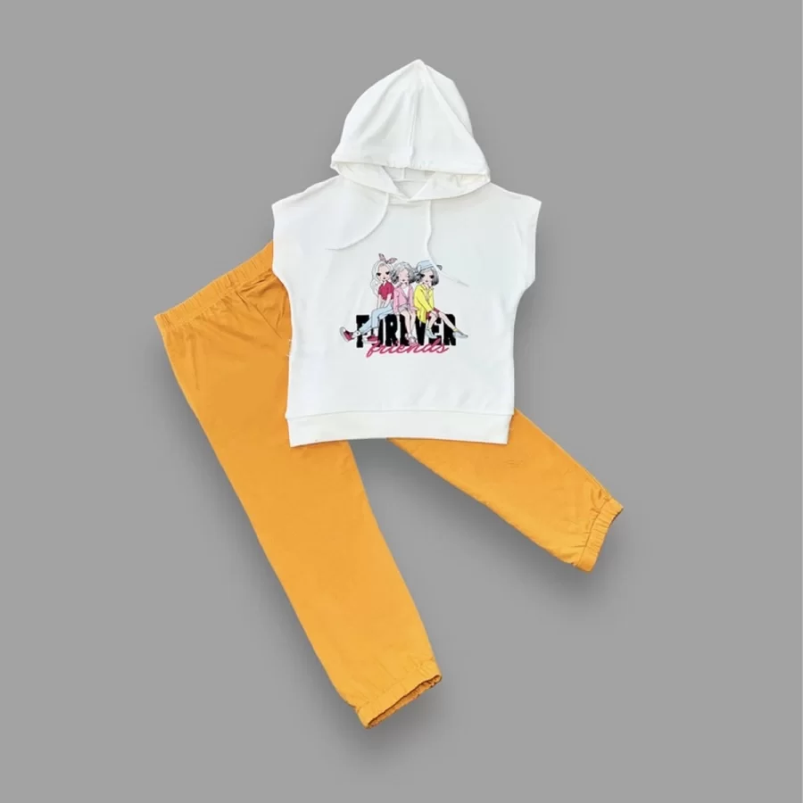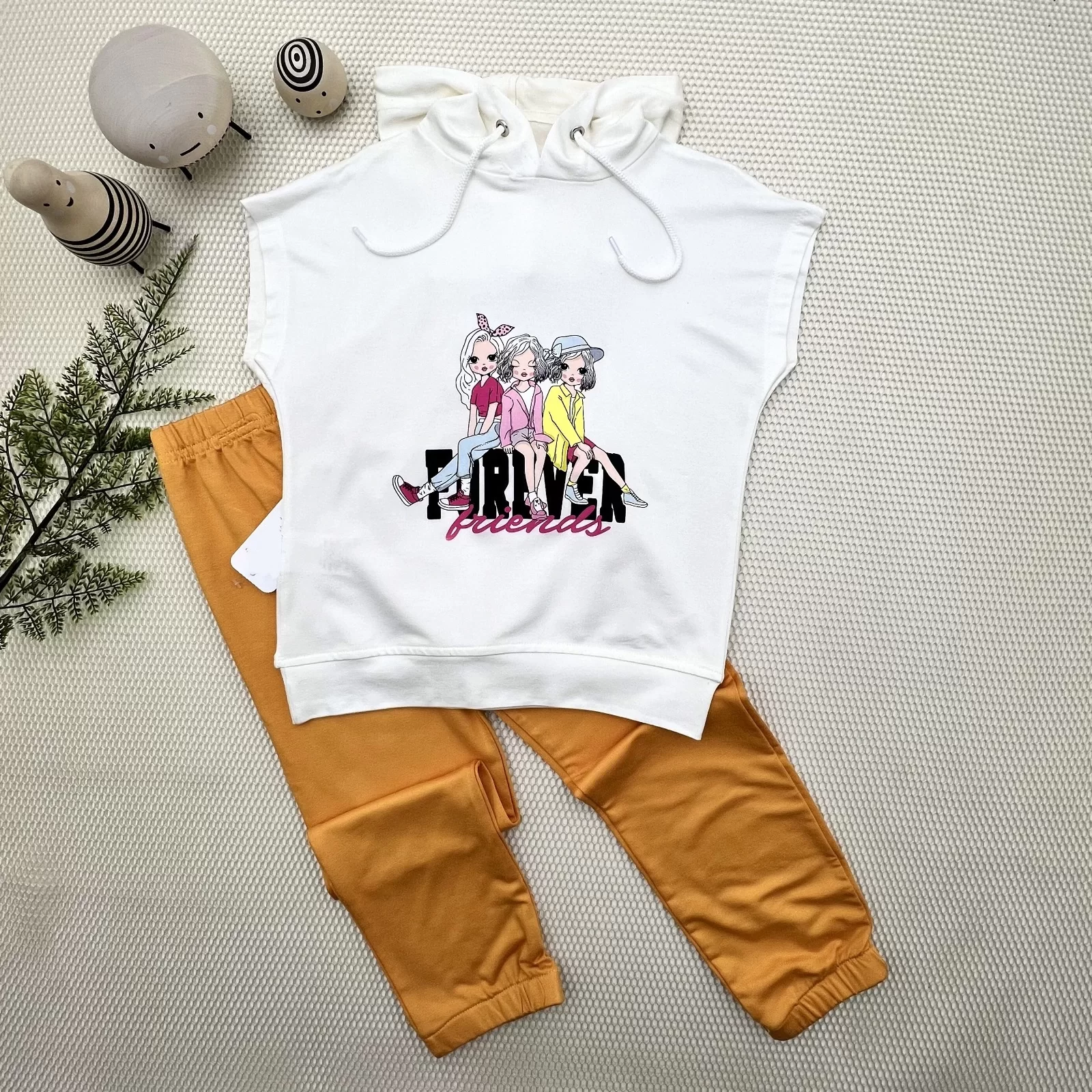 3-4-5 Yaş Forever Cici Kızlar Baskılı Kapşonlu 2li Kız Çocuk Takımı Turuncu