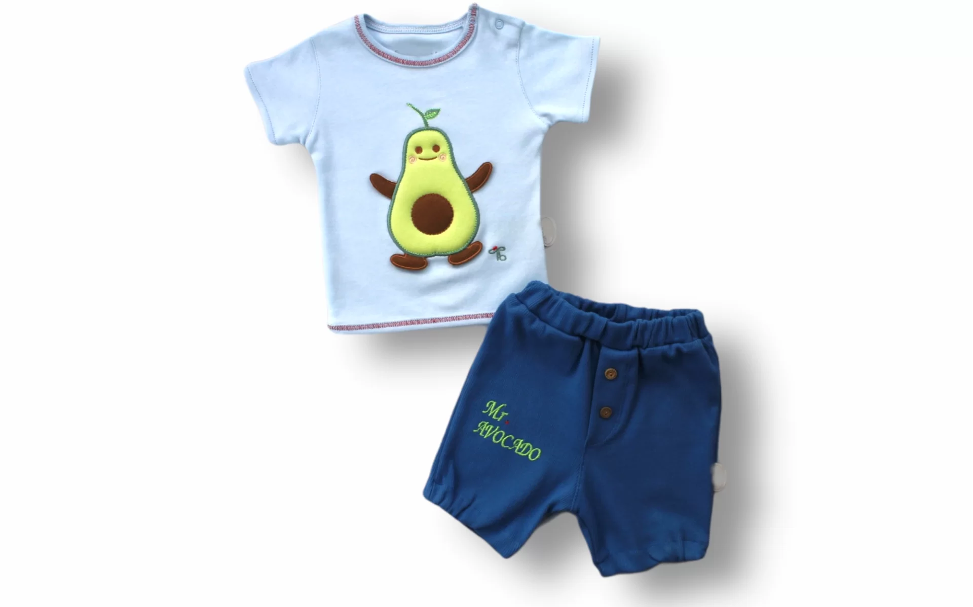 3-6 6-9 9-12 12-18 Ay Avokado Nakışlı Kısa Kollu Sweatli Şortlu 2li Kız-erkek Bebek Takımı