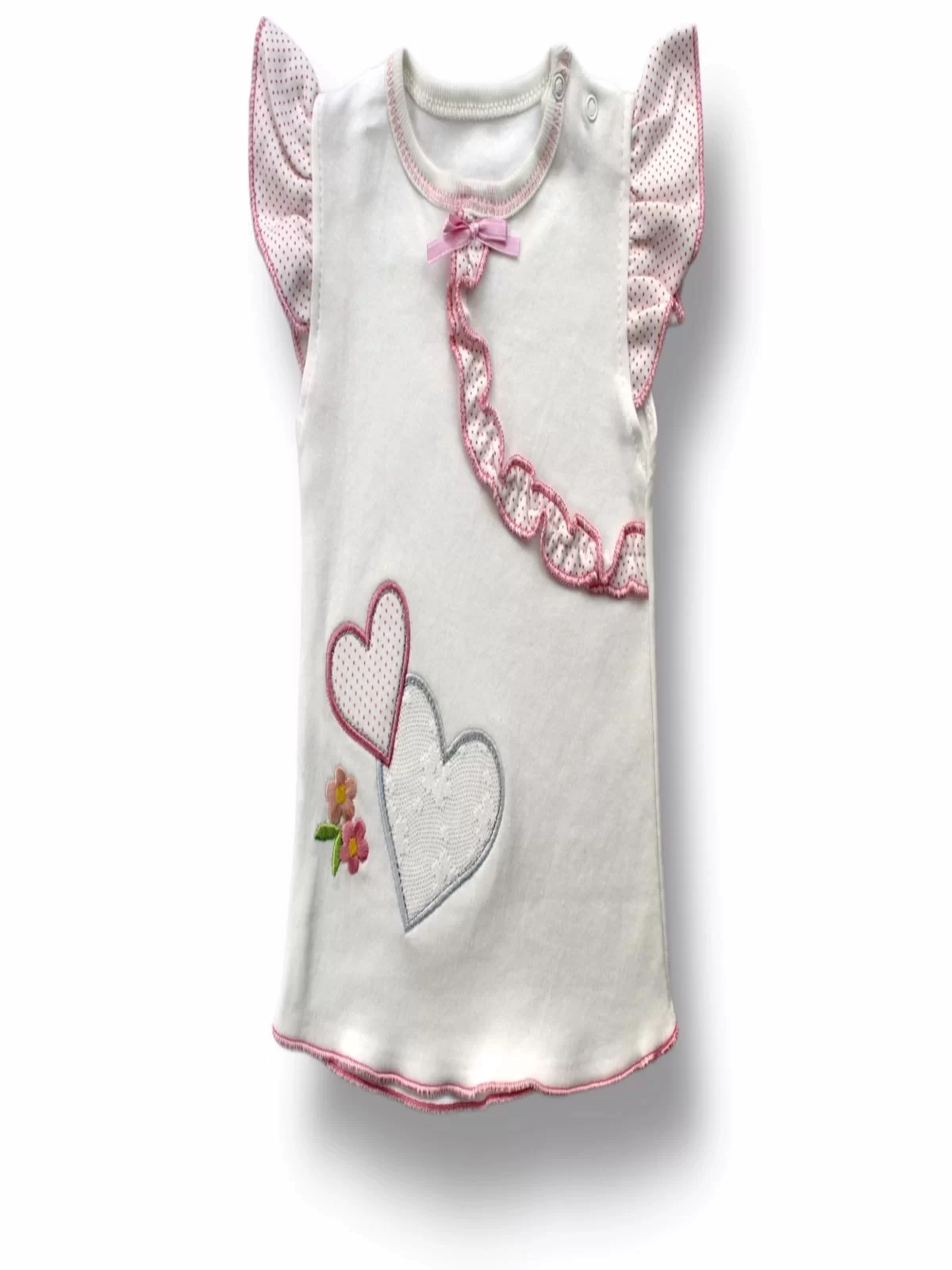 3-6 6-9 9-12 12-18 Ay Çift Kalp Nakışlı Şort Tişört 3lü Kız Bebek Takımı