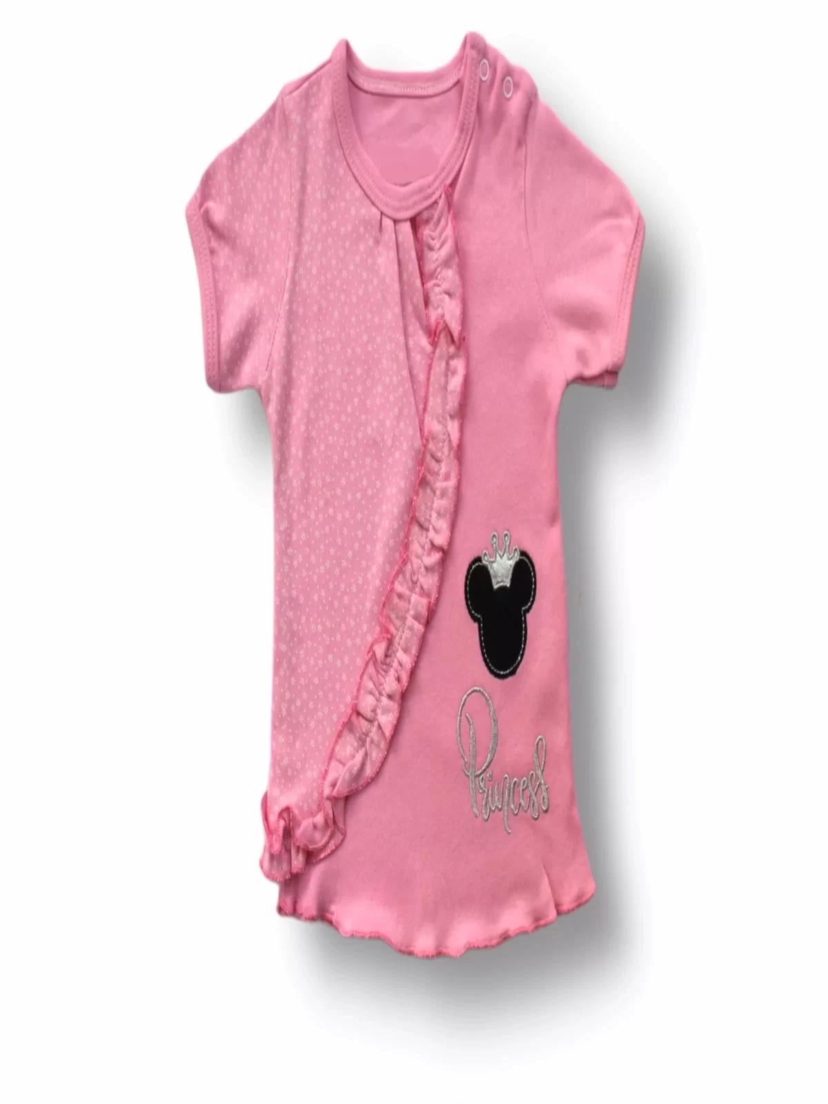 3-6 6-9 9-12 12-18 Ay Princess Taçlı Mickey Nakışlı Şort Tişört 3lü Kız Bebek Takımı Pembe